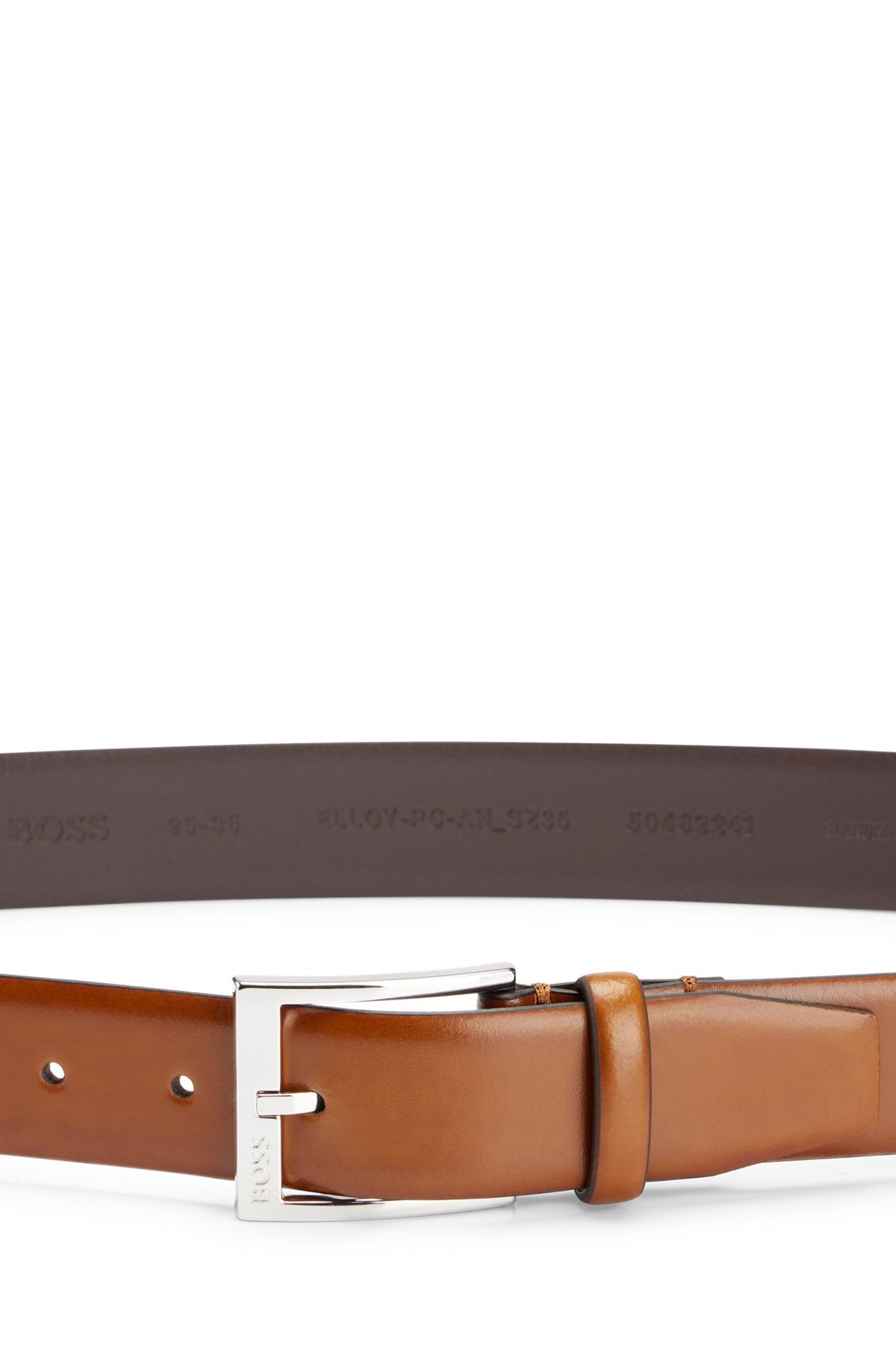This refined Italian-made belt from BOSS features smooth leather and a logo-engraved silver-tone buckle. With a 3.5cm width, it adds a touch of sophistication to any outfit. Elevate your style with this timeless piece of craftsmanship.