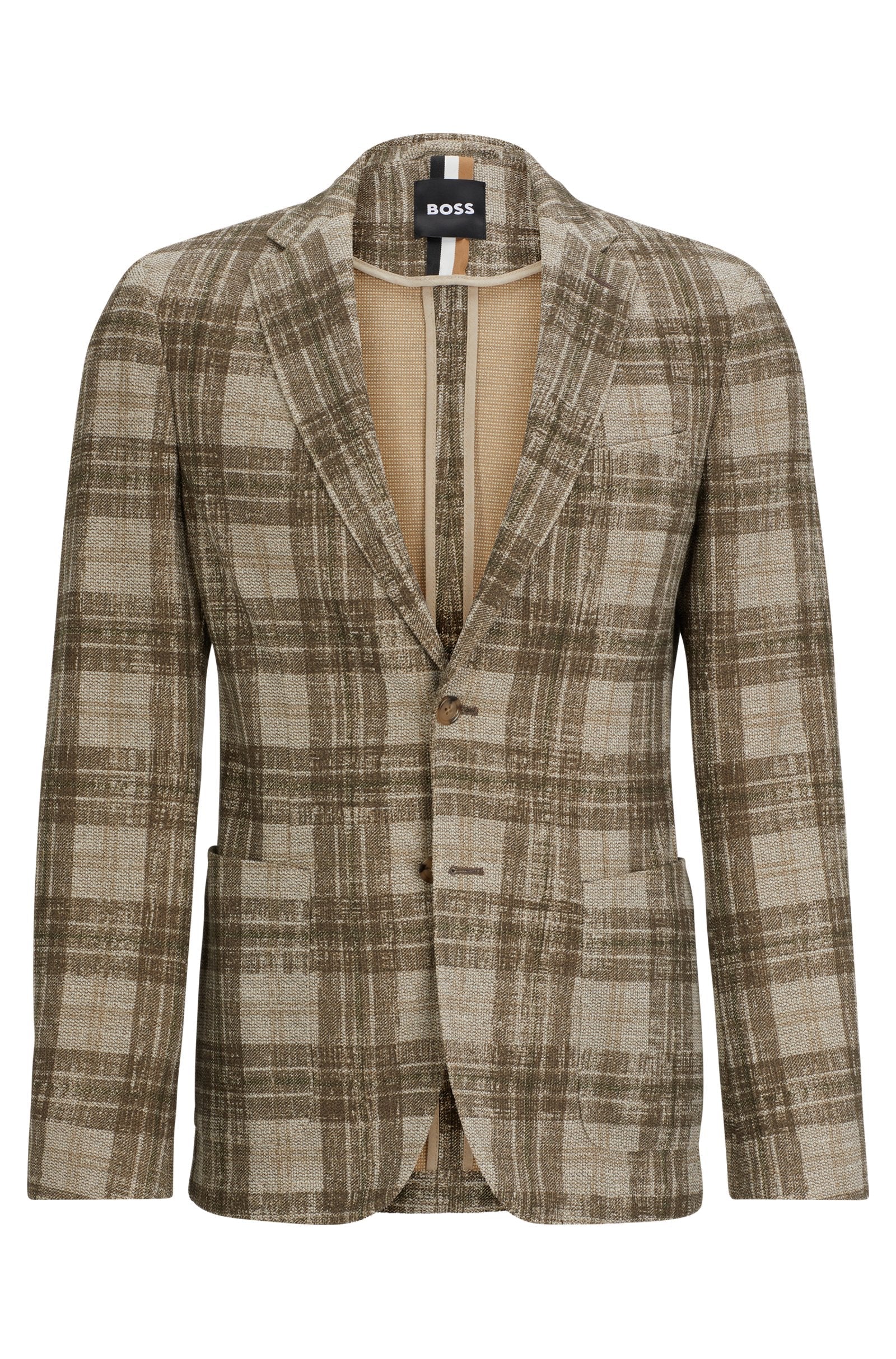 Boss Slim-Fit Jacket in Checked Stretch Jersey