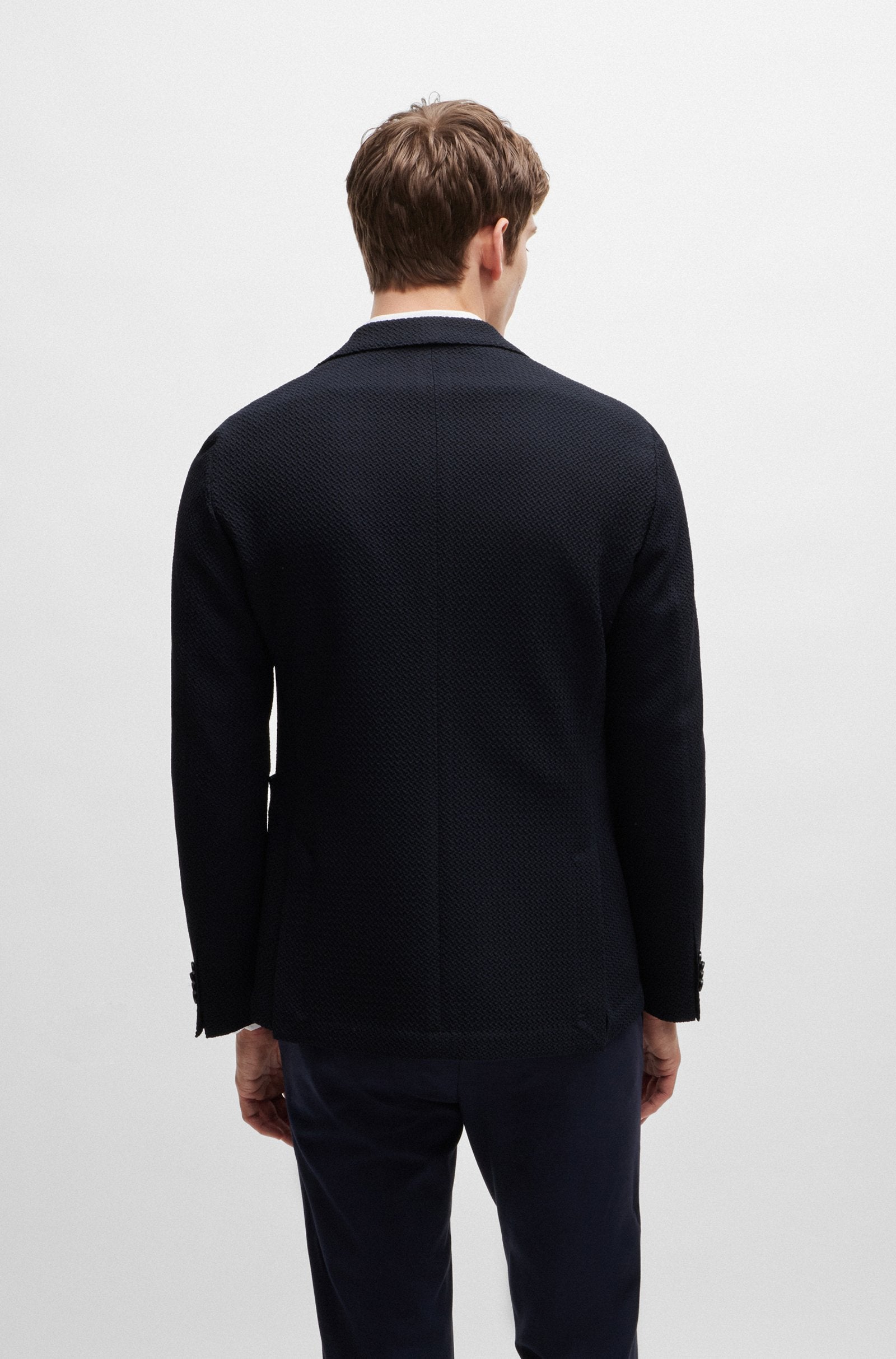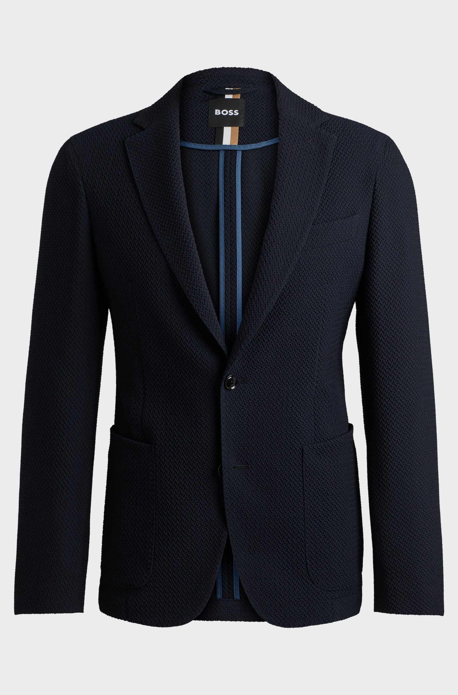 BOSS Slim-Fit Jacket in Wool-Blend Seersucker Fabric
