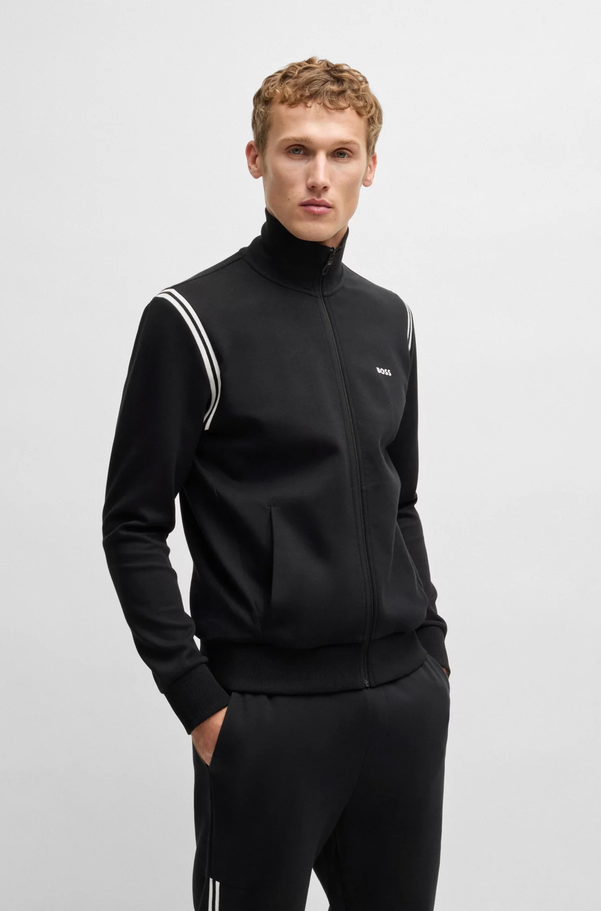 Boss Stretch-Cotton Regular-Fit Tracksuit with Stripe Inserts