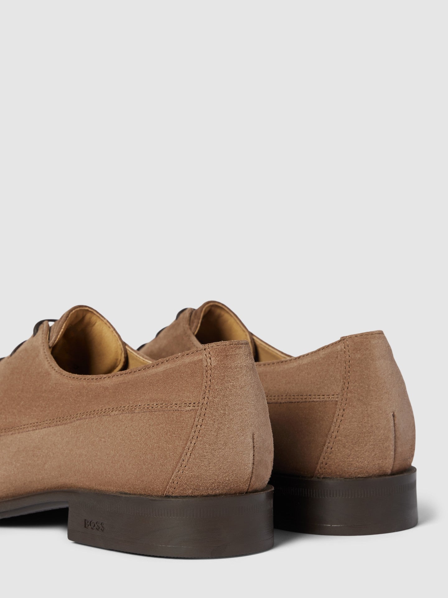 The BOSS Timeless Derby shoes are expertly crafted from soft suede and feature a removable padded insole for maximum comfort. These shoes come equipped with laces and a full lining, and are packaged in a box.