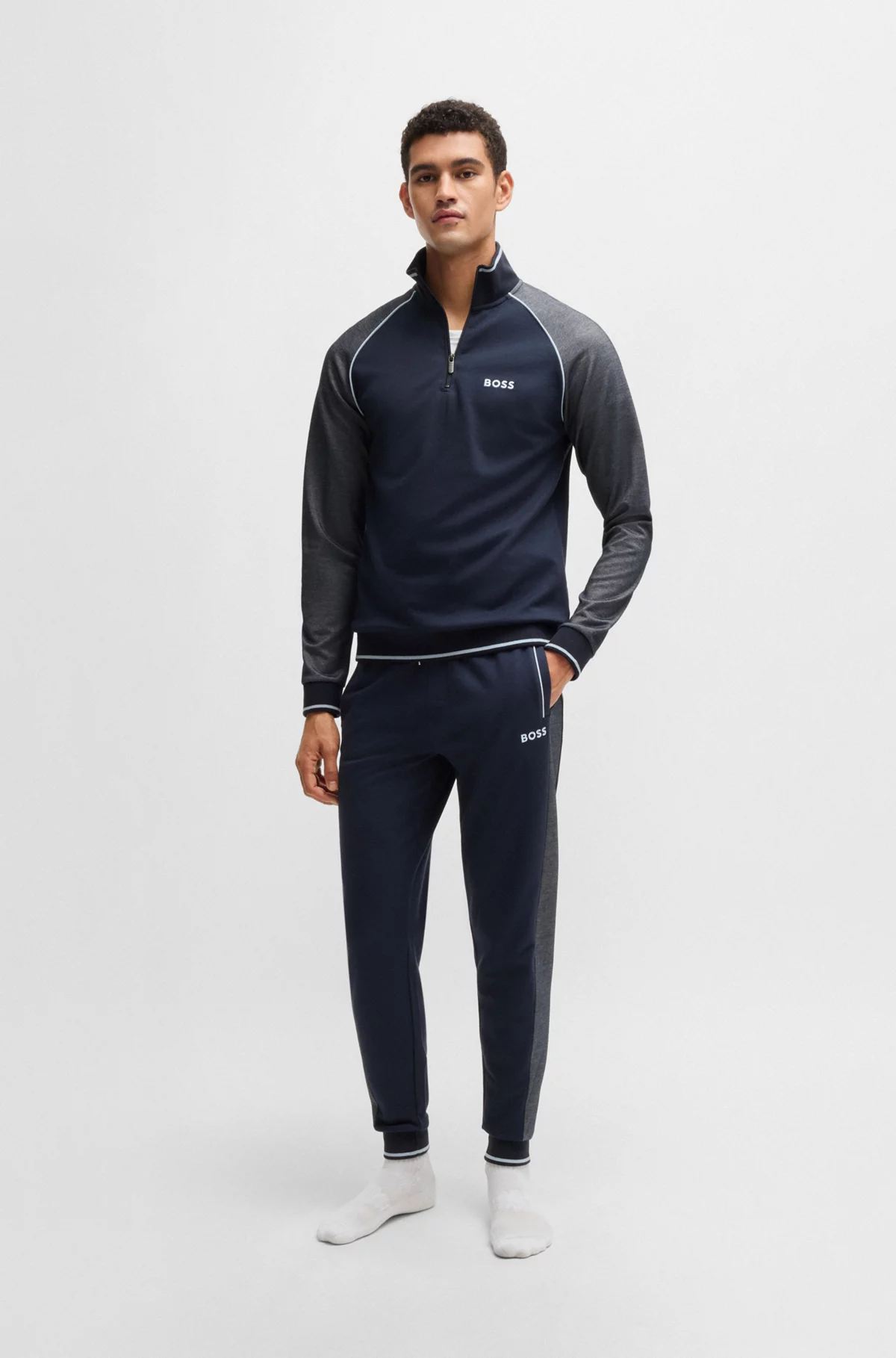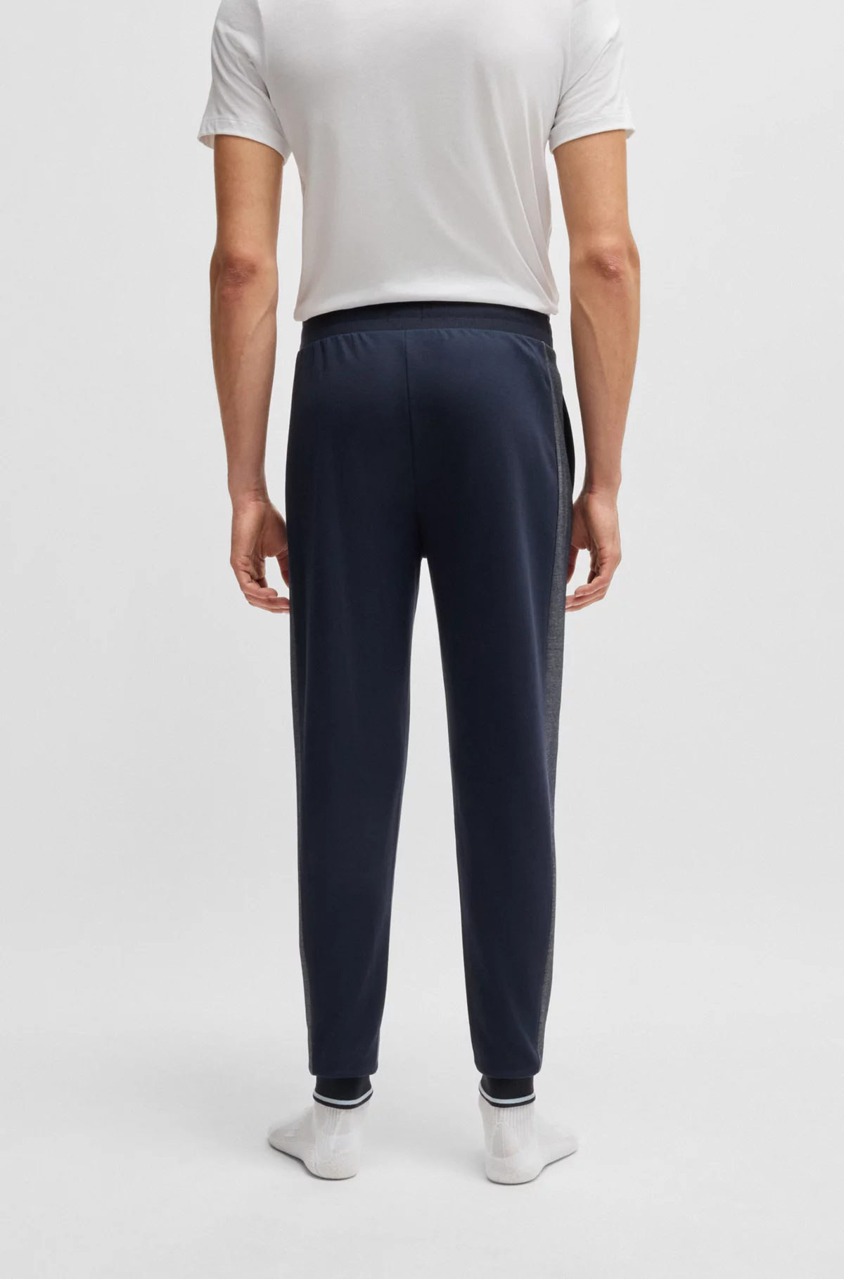 Get ready to make a statement with these BOSS tracksuit bottoms! Perfect for the fashion-forward individual, these cuffed bottoms feature contrast piping and stripes for a sporty yet stylish look. Made with mixed structures of high-quality cotton, these bottoms will keep you comfortable and trendy.