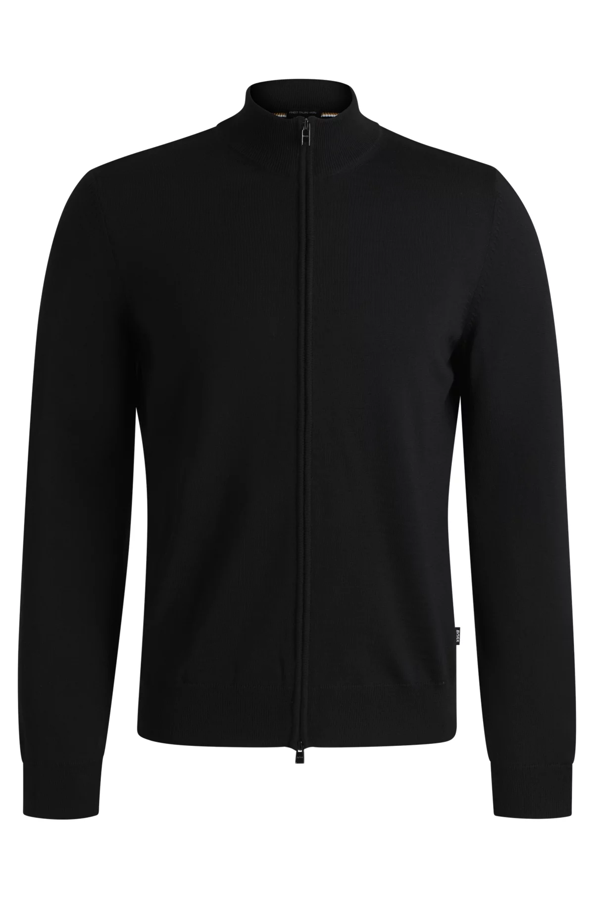 Unleash your style with this versatile BOSS Virgin-Wool Cardigan. The two-way zip adds functionality while the signature stripe inside the collar adds a touch of class. Made with soft and warm wool, this cardigan is perfect for any occasion.