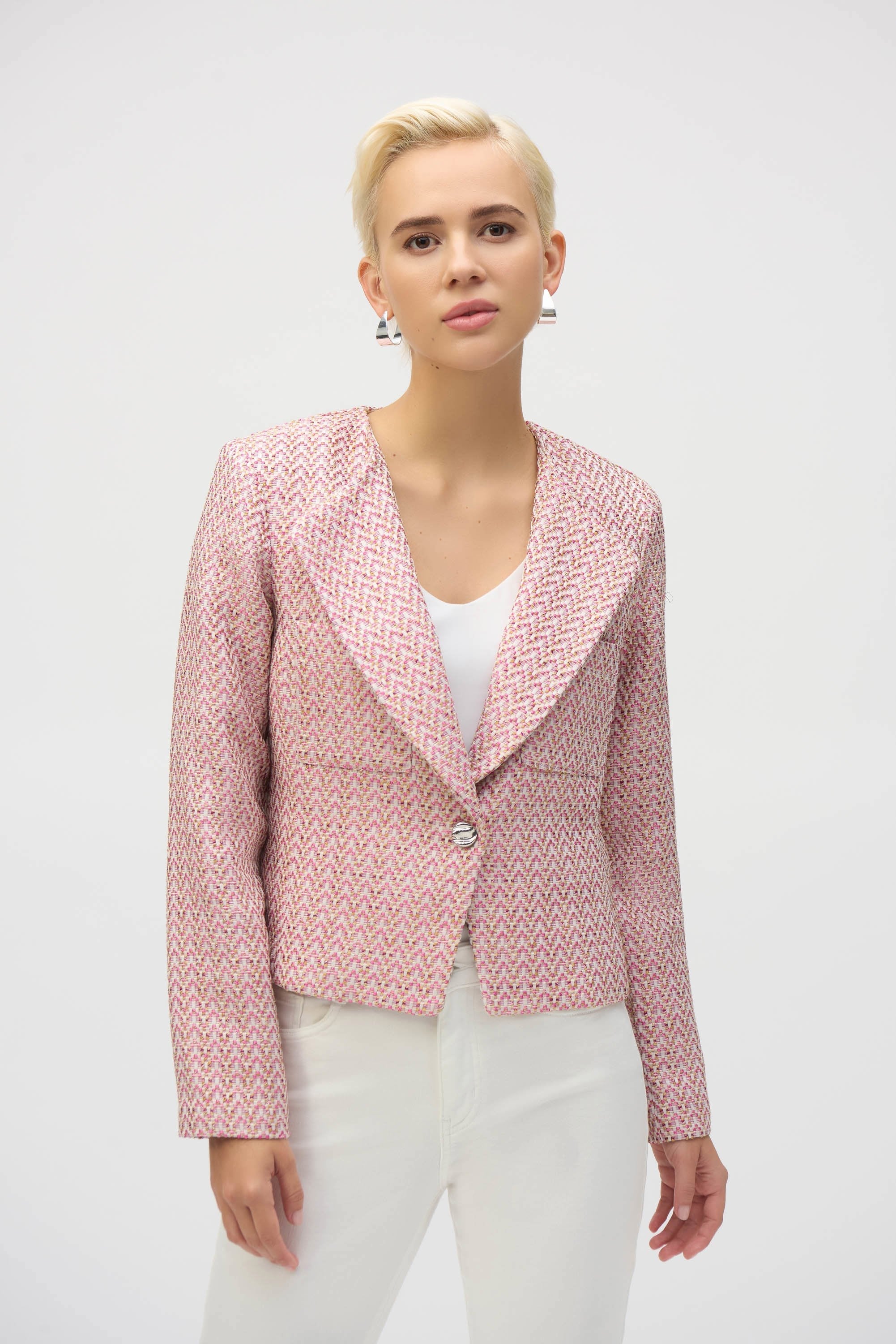 Bouclé Woven Boxy Blazer- Pink/Multi