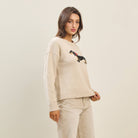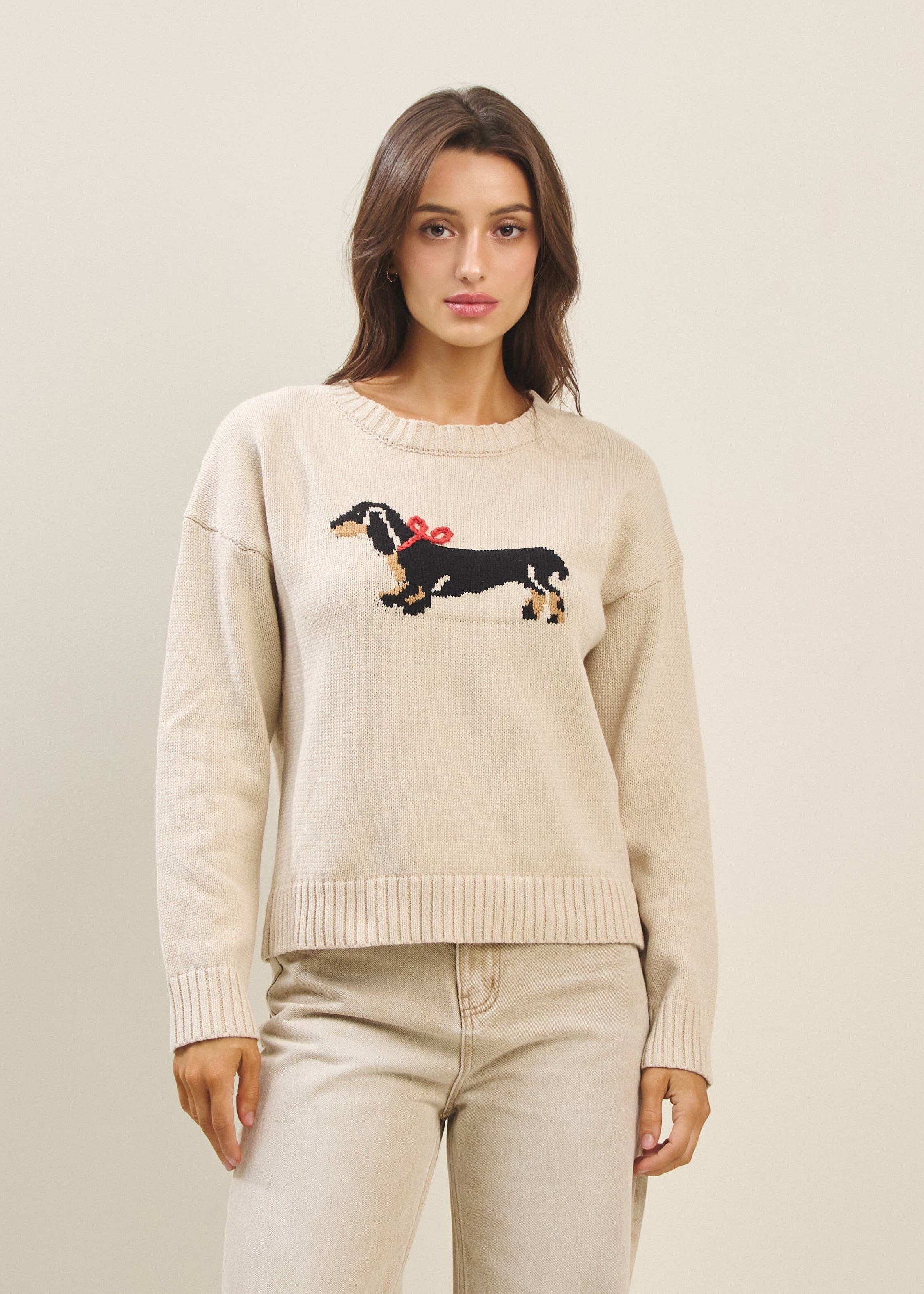 Adorable pups in playful poses bring charm to this cozy long sleeve knitted sweater. The soft pullover design slips on effortlessly for everyday comfort, while the whimsical puppy print adds personality to your wardrobe. Perfect for dog lovers who want to wear their passion, this knit top pairs beautifully with jeans, skirts, or leggings. Snuggle into warmth and style with a sweater that celebrates your love for our four-legged friends.