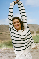 Classic stripes and rib detailing come together in this midweight crewneck sweater, perfect for a casual French tuck. Cozy and bold, this sweater is made for chilly days and weekend outings.