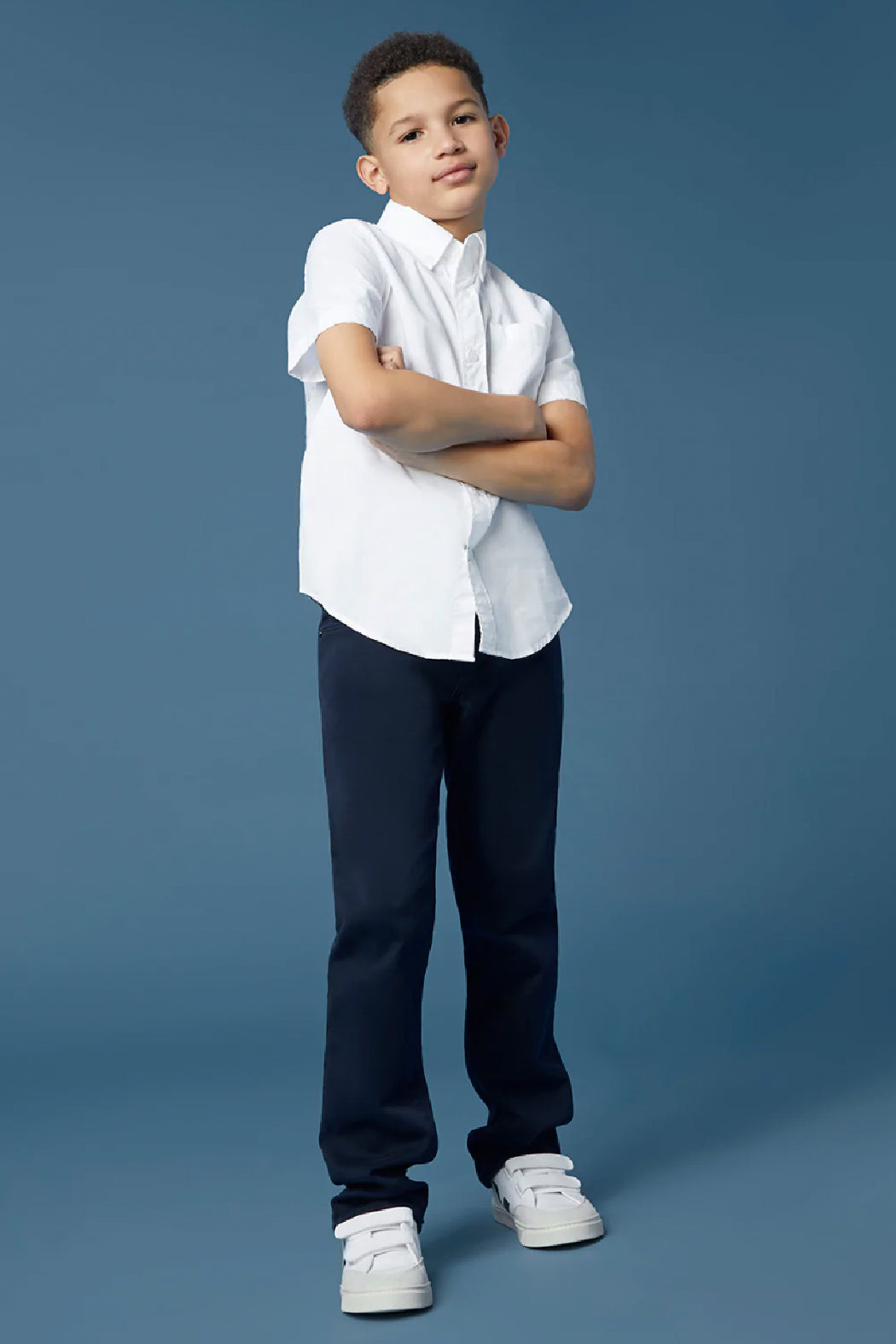 The Brady is a slim fit that runs lean from hip to hem. Its tailored cut delivers a flexibly soft, high-recovery fit that will never lose its shape.