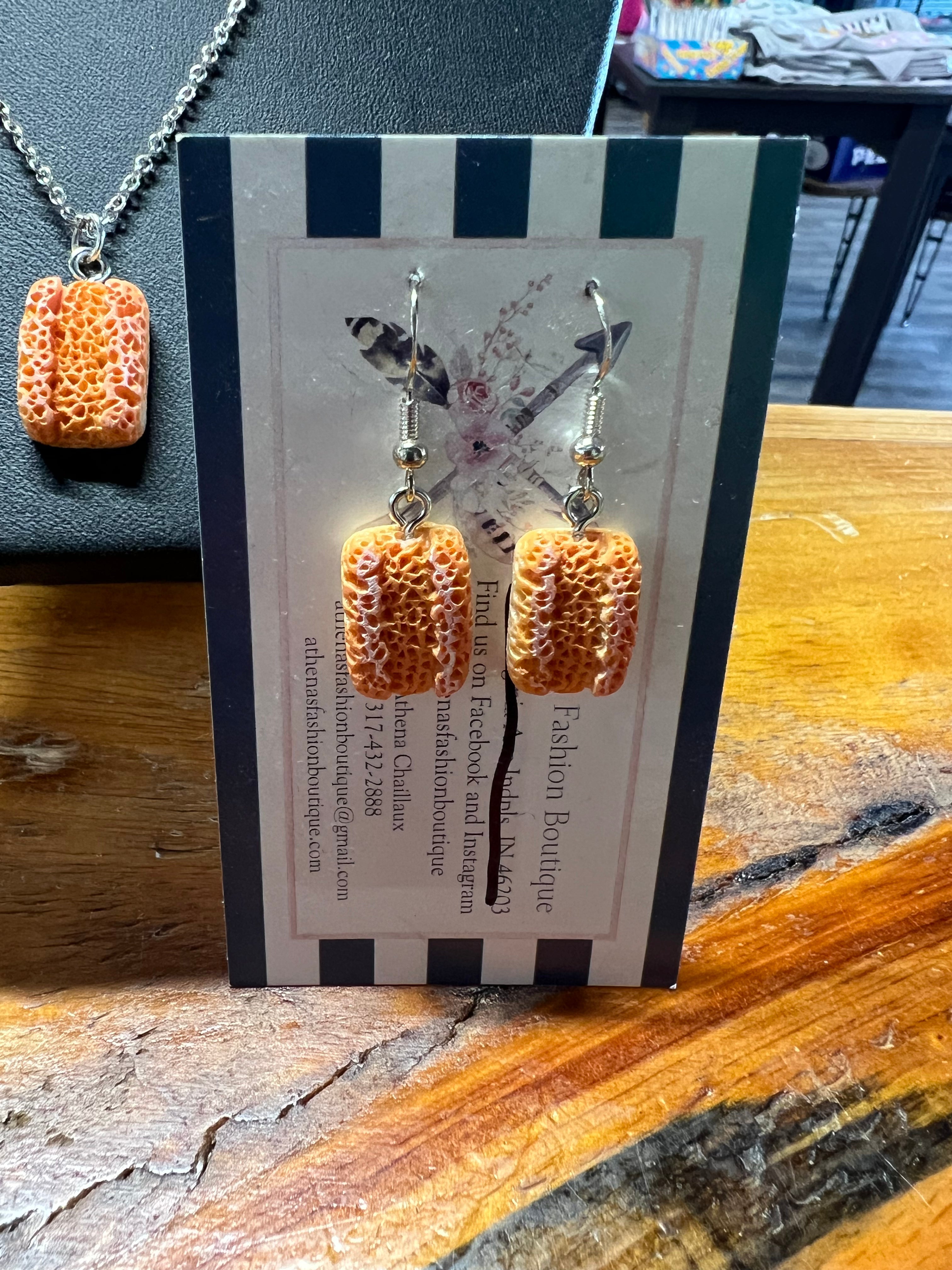 Bread Earrings on .925 Sterling hooks are perfect for brad lovers and foodies! The bread charm measures about an 1.5 inch drop. Pair it with our matching necklace for a complete look!