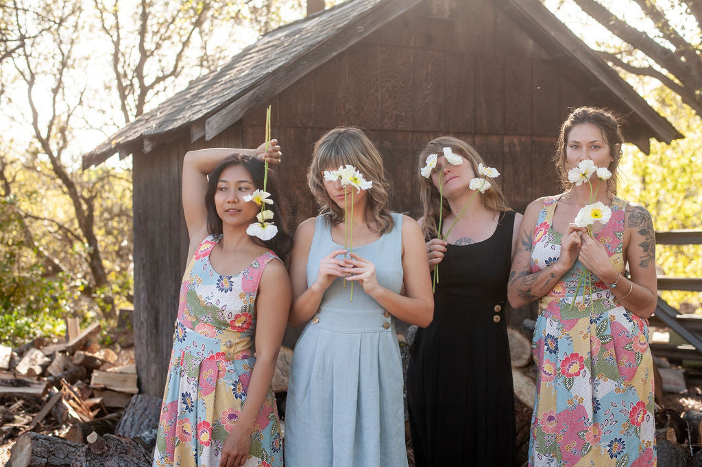 The Brigid Jumper in a Patchwork party print rayon challis. Lightweight and feathery, feels like wearing nothing at all.