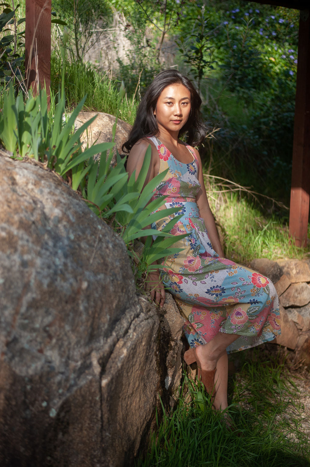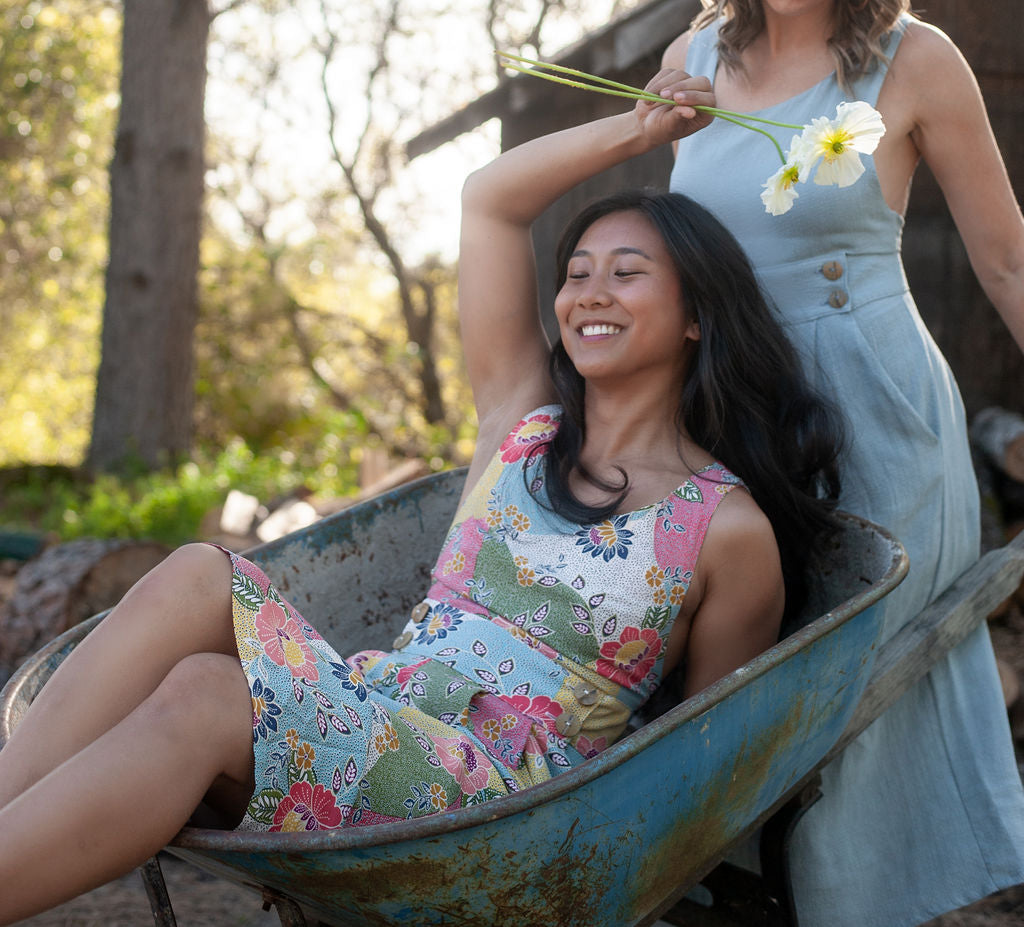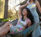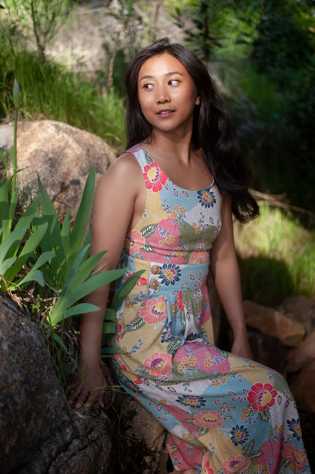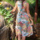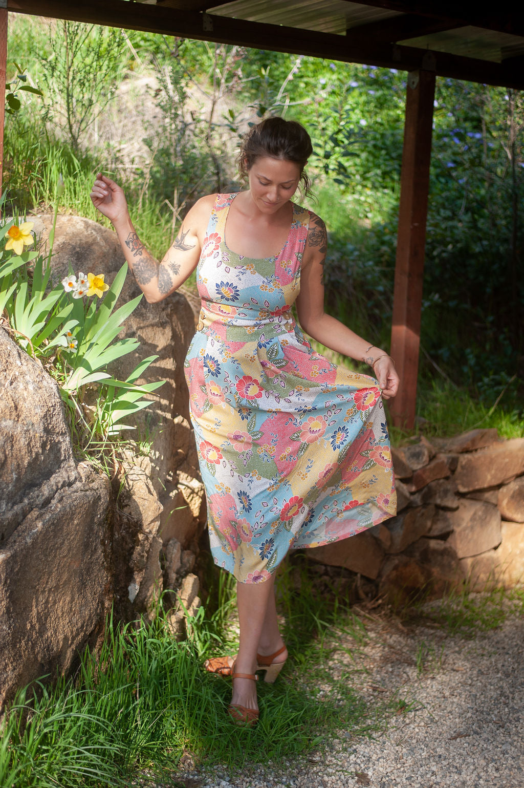 The Brigid Jumper in a Patchwork party print rayon challis. Lightweight and feathery, feels like wearing nothing at all.