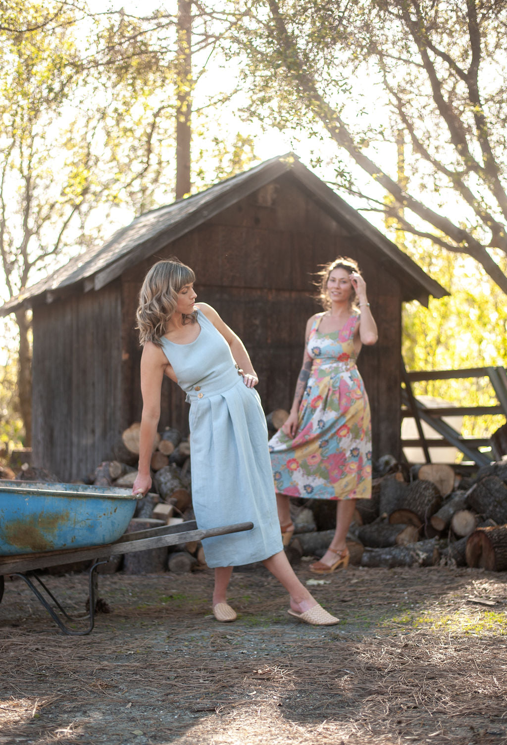 Bamboo button-up closure at the high waist. Long strap that ties around the low back. Added sexy touch with a little (not too much) side-boob. Wear with nothing at all or with a tank or shirt underneath, works well with a long sleeve in the winter.