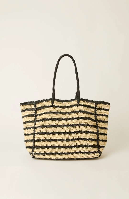 Make a lasting impression with the Torino Tote! This beautiful raffia tote is perfect for adding a touch of elegance to any outfit.