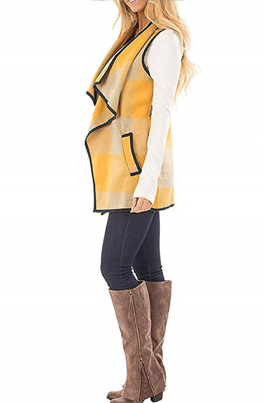 Buffalo Plaid Cardigan Jacket Wavy Front - Side Pockets Yellow, Tan and Brown