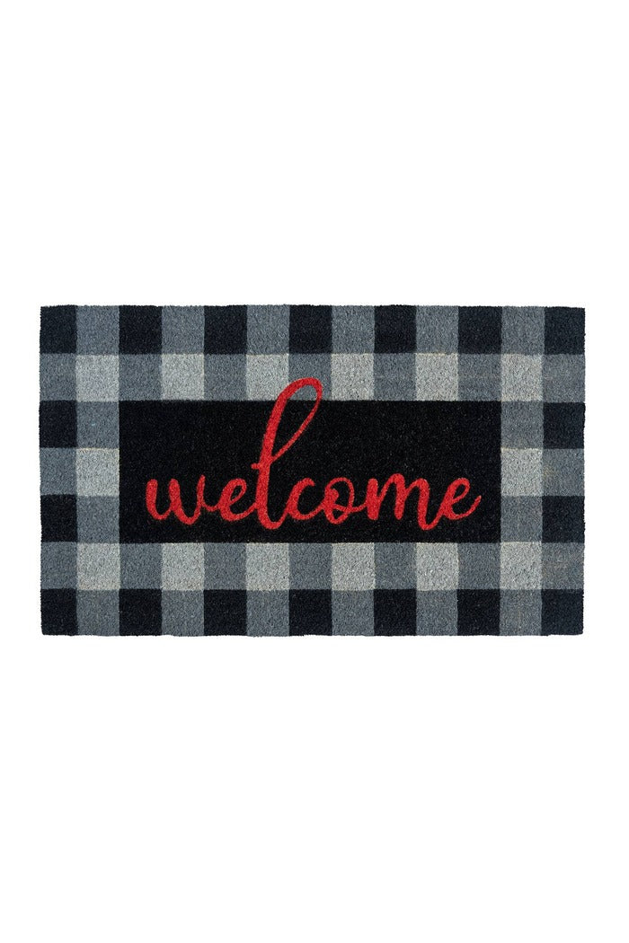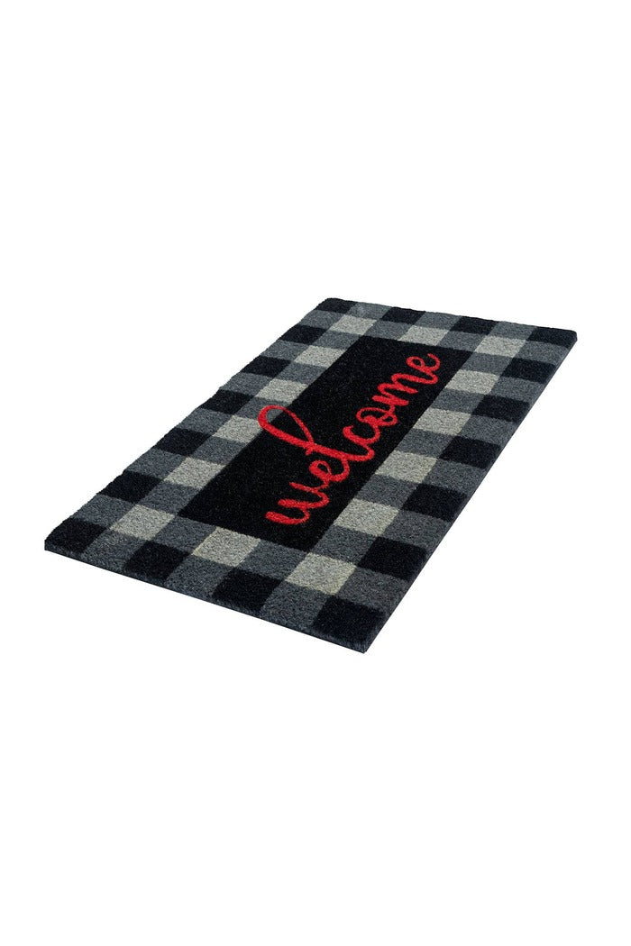 Buffalo Plaid Welcome Coir Doormat