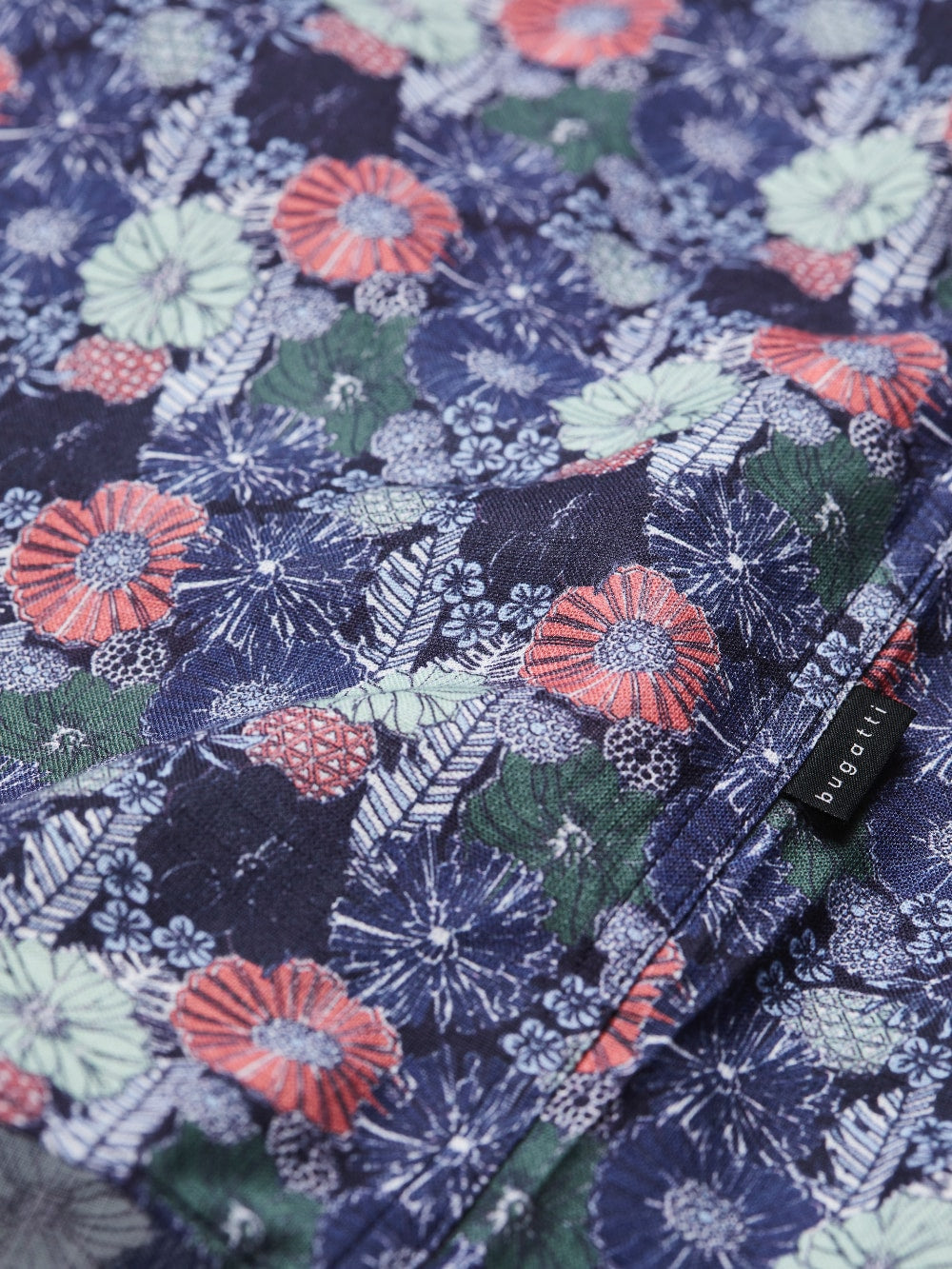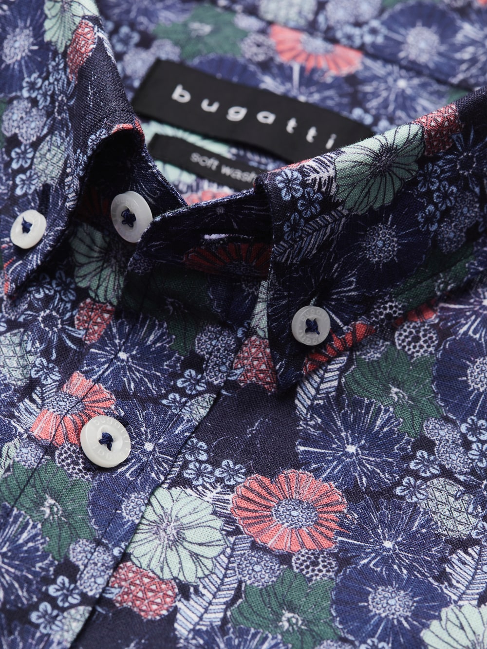 Upgrade your wardrobe with the sophisticated Bugatti Floral Short Sleeve Shirts in a navy base print. Meticulously crafted with precision and expertise, this versatile shirt can be dressed up or down for any occasion. Keep it buttoned up or roll up the sleeves for a more laid-back look. Complete the outfit with sneakers for a casual feel or dress it up for a professional event. Make a statement wherever you go with this timeless shirt.