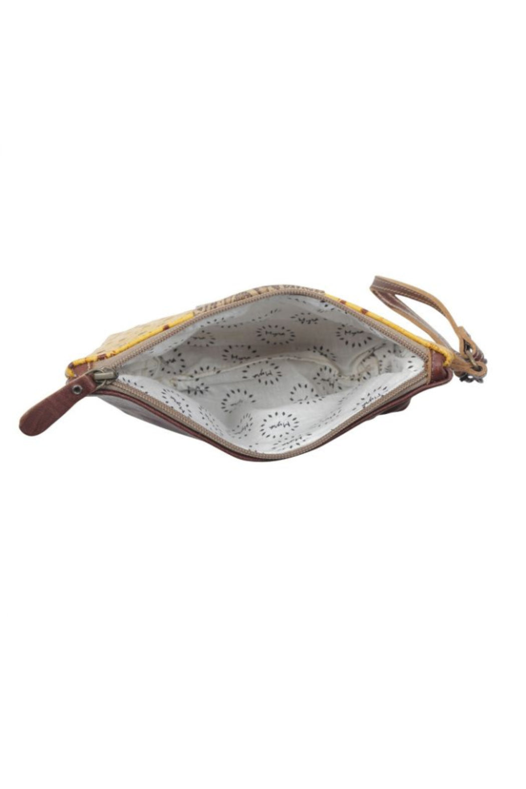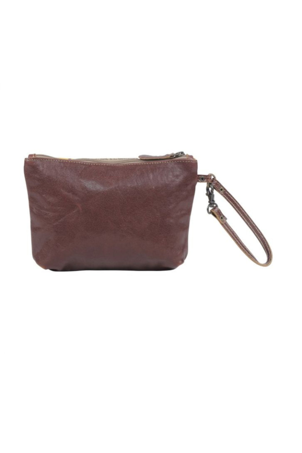 Beautiful, hand tooled leather wristlet with zipper closure.