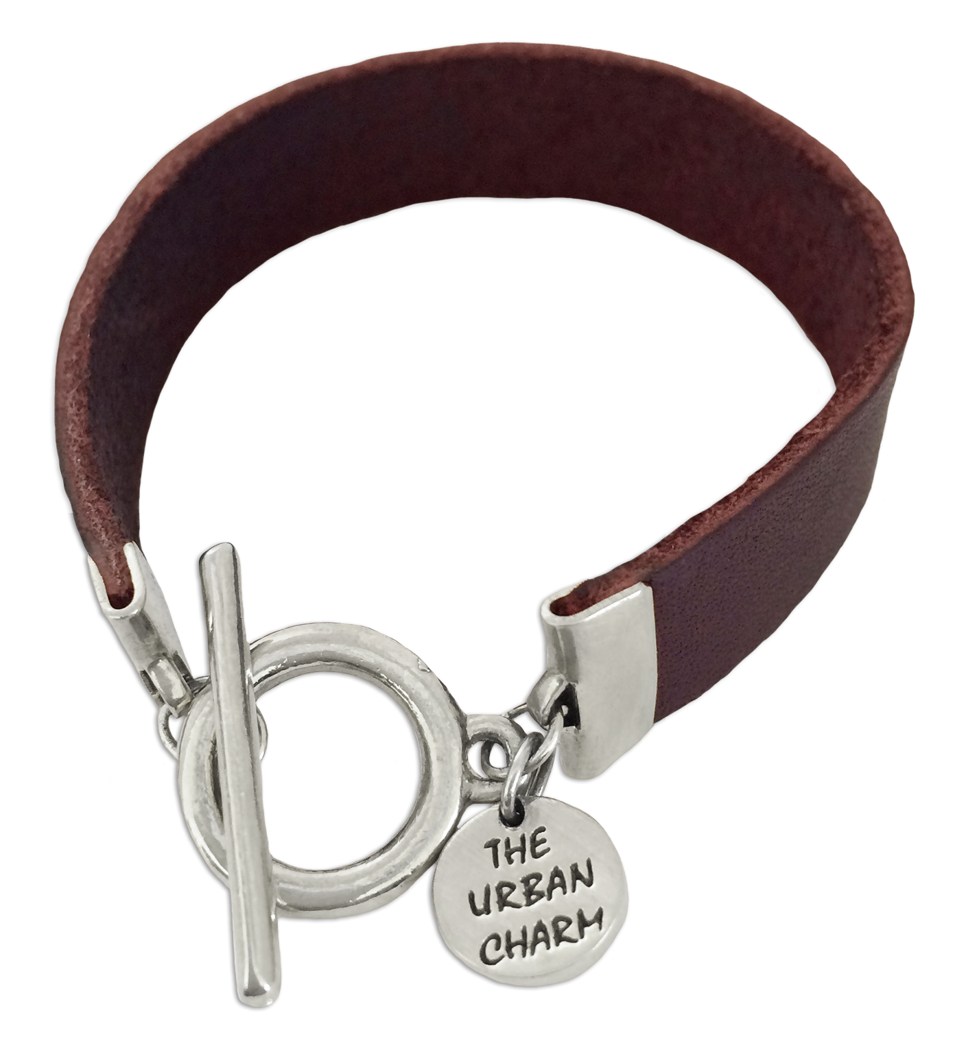 The Urban Charm burgundy color band is made with genuine leather and features a branded hand casted logo and toggle closure. Pair it with any of the lures of love earrings or stack more up your arm for an arm party. You can add your favorite essential oil to the back of the leather to keep you feeling and smelling great all day.