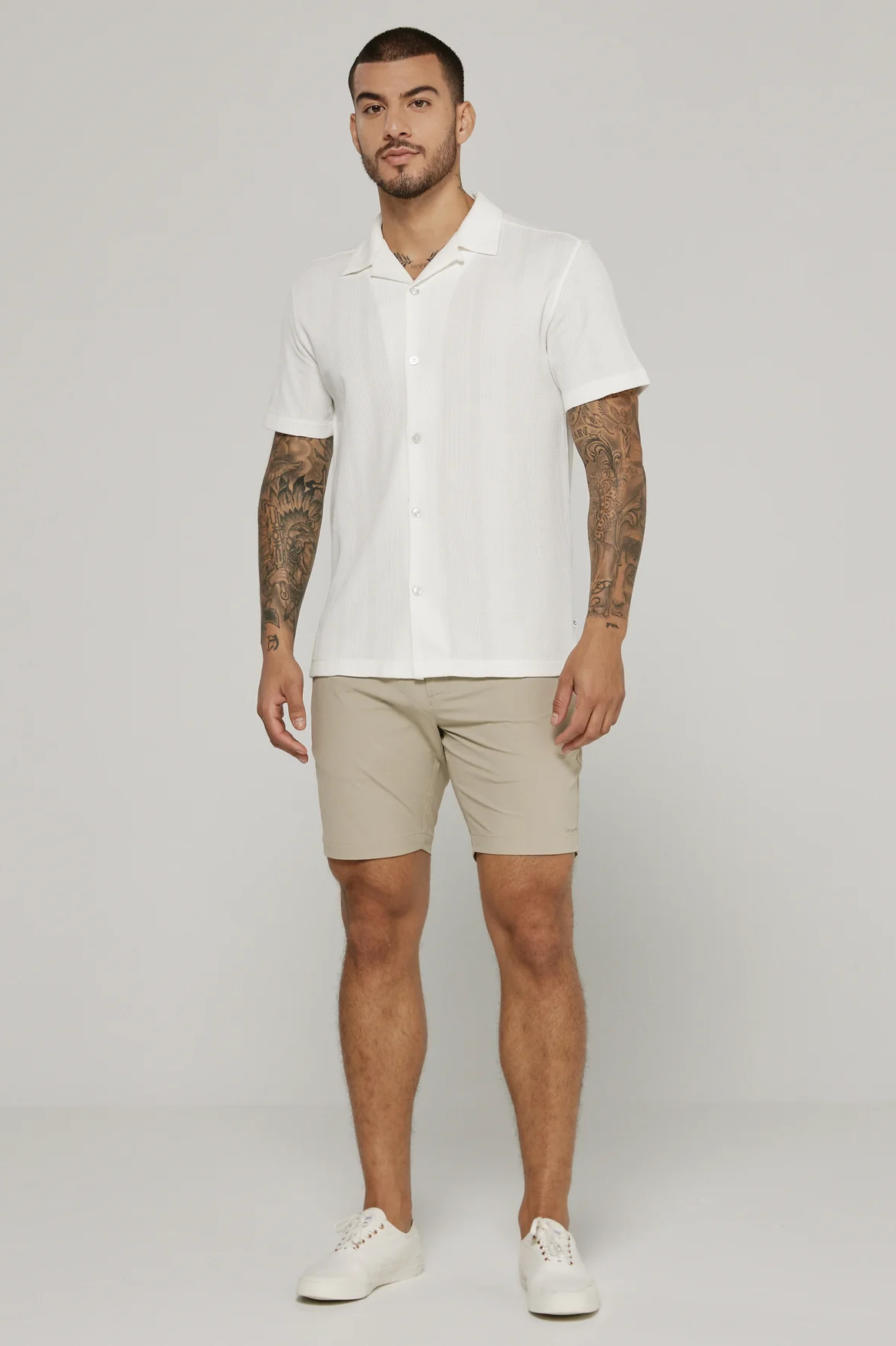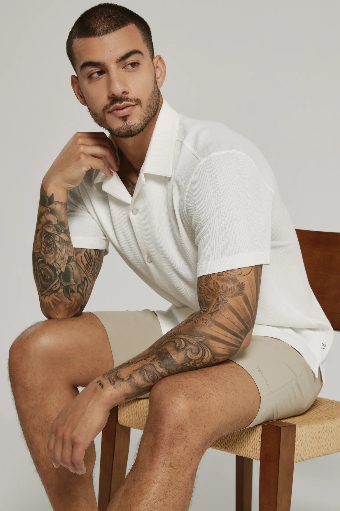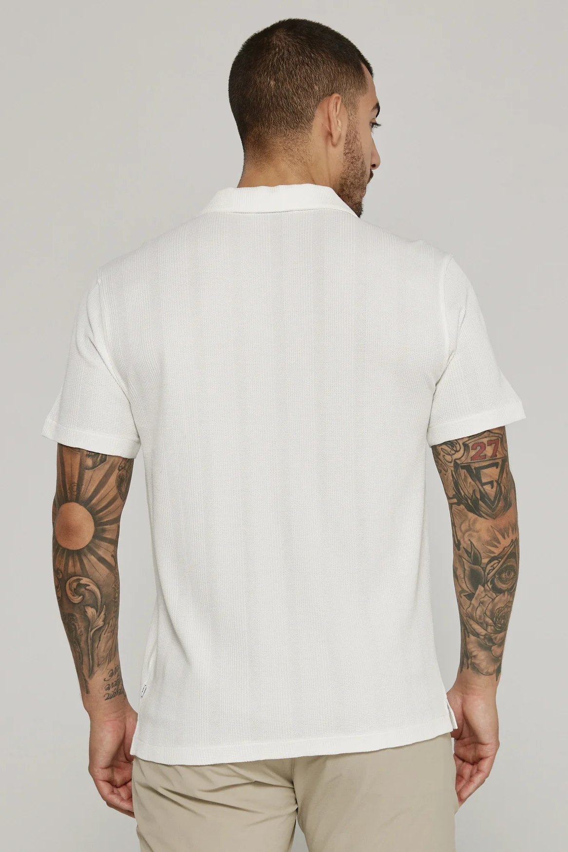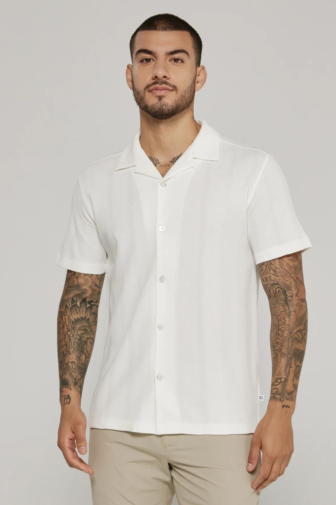 An airy and breathable textured knitted camp collar shirt. Crafted with a cotton fabric blend that promises elevated comfort and effortless style.
