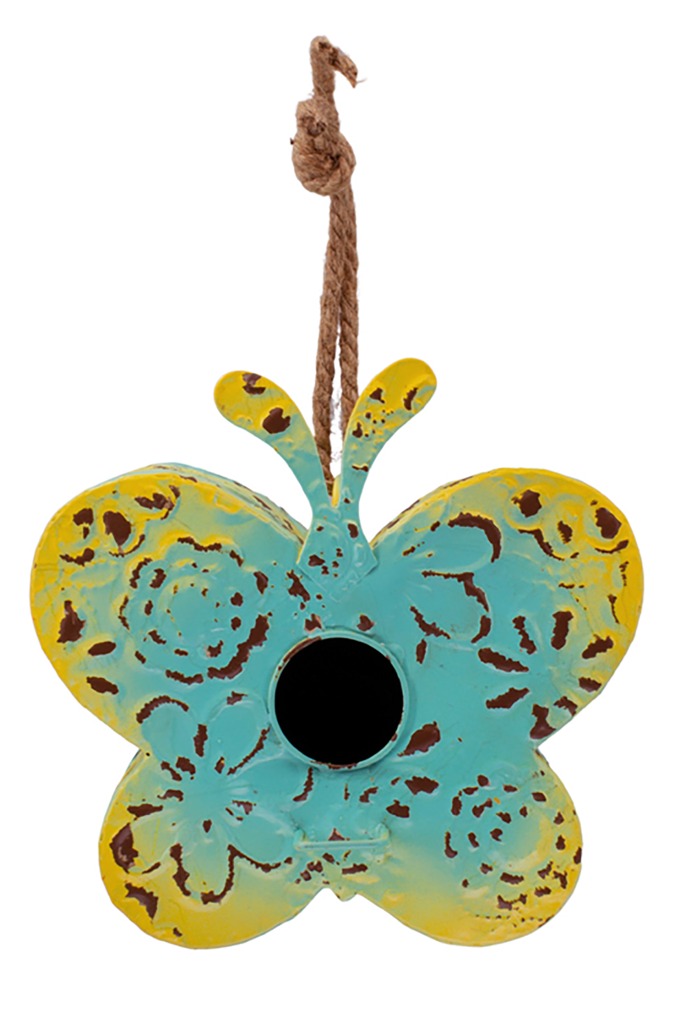 This decorative Assorted Butterfly Hanging Birdhouse is sure to attract birds of all kinds to your garden! Designed to hang on a tree or wall, the unique butterfly-shaped design will be a beautiful addition to any outdoor space. Crafted with rich, vivid colors, it's an eye-catching piece that provides a comfortable home for your feathered friends.