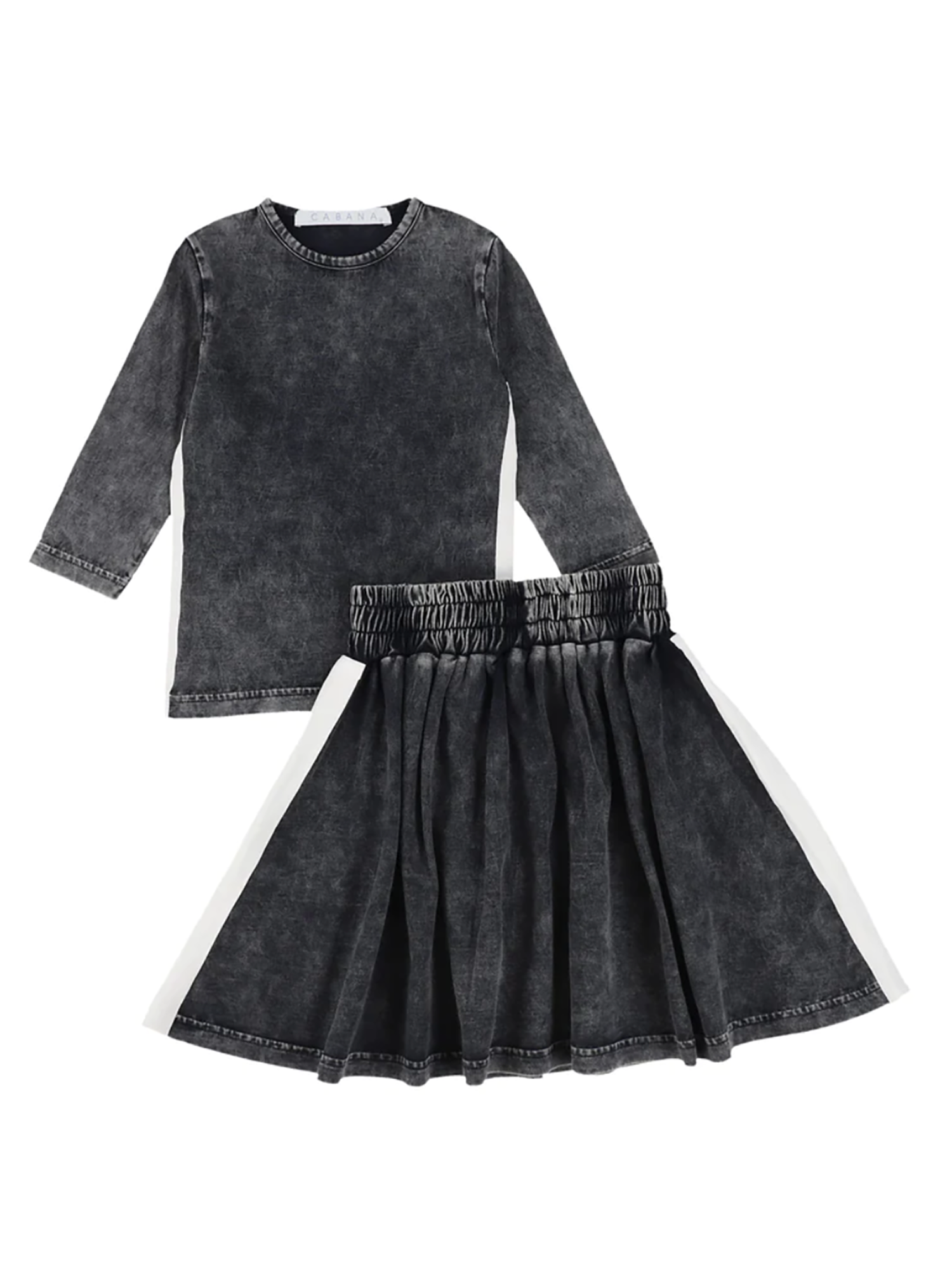 •LOOK: The not-so -basic tee from Cabana is made of lightweight cotton with a slightly distressed look. It has long sleeves and a rounded neckline. It hits at the hip and has cool racing stripes down each side. Looks great with the available matching skirt or any denim bottom. Try it with white denim for a spectacular, casual summer look.