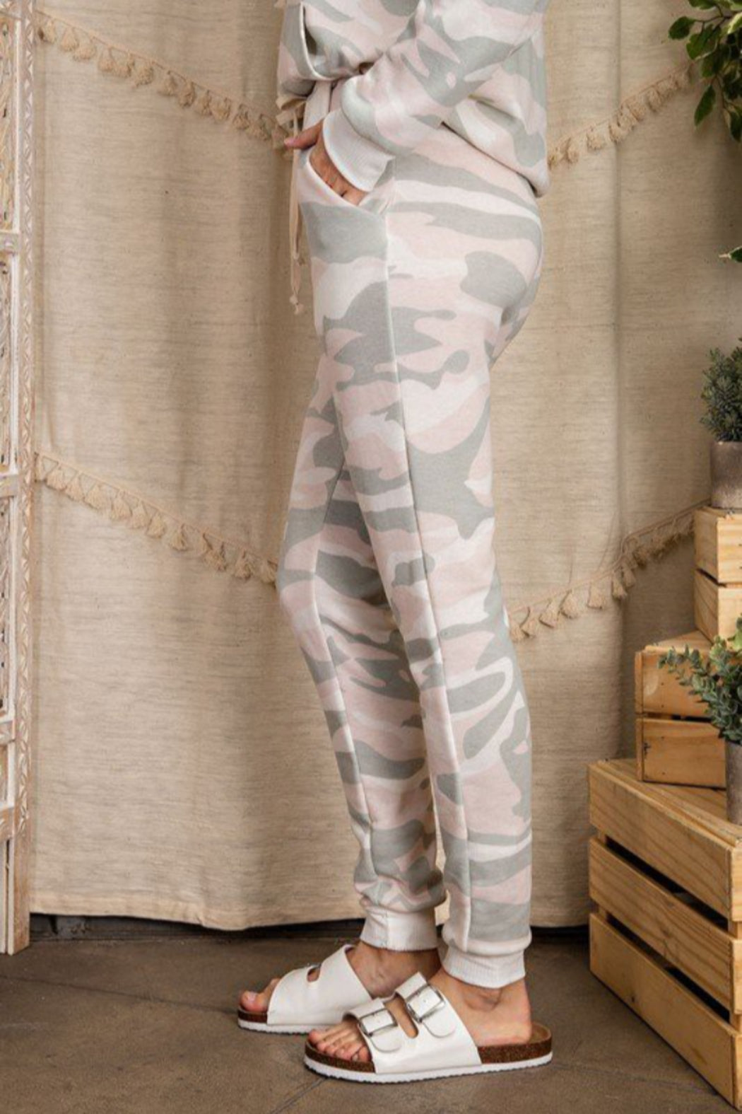 These camo printed jogger pants feature an elastic waist band, a drawstring, side pockets and elastic around the ankles. These joggers pair perfect with your favorite t-shirt or hoodie or pair them with the matching hoodie ( ty4536lu)