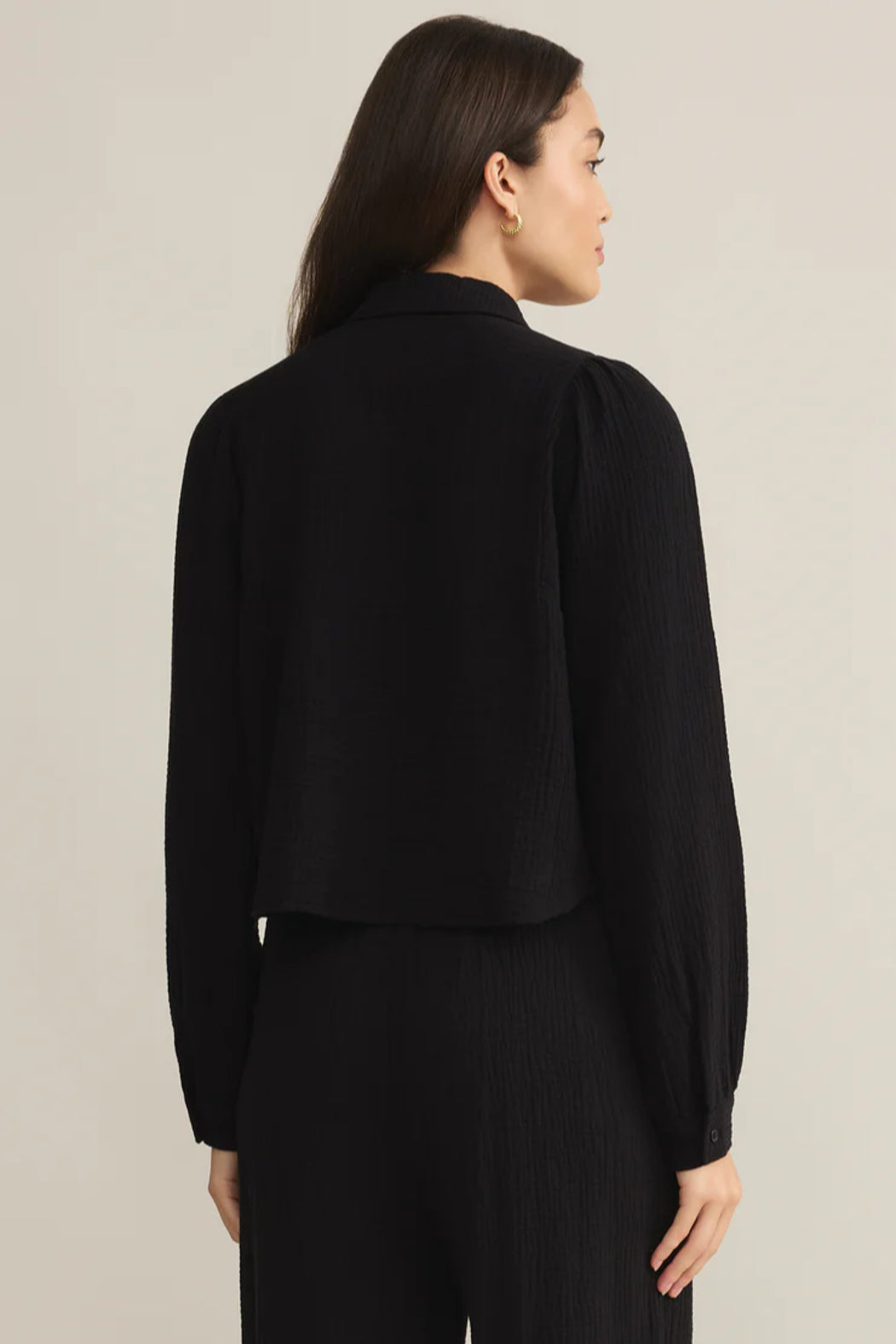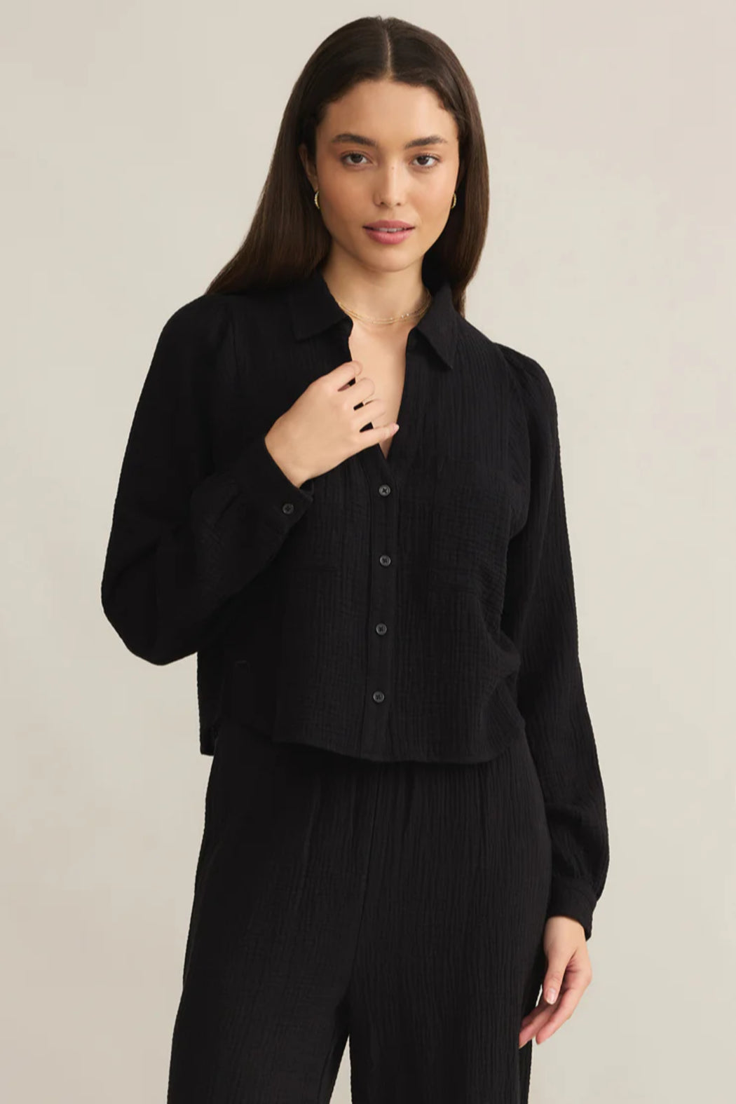 This cropped collared button-up top is crafted from lightweight double gauze fabric for an effortlessly relaxed fit. Finished with chest pockets and an airy feel, it’s a summer staple with a playful twist.