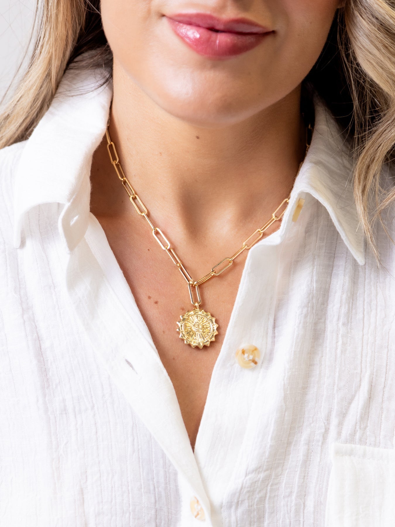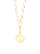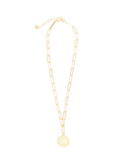 Our Canton Necklace combines timeless charm with a bold, modern twist. Featuring a beautifully detailed coin pendant on a statement chain, this piece adds a touch of elegance and edge to any look. Perfect for wearing solo or layering with other favorites, the design makes it an eye-catching accessory that transitions effortlessly from casual to formal.