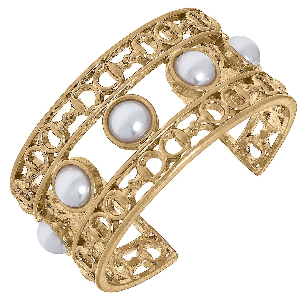 Canvas Style - Foster Pearl & Horsebit Statement Cuff in Worn Gold
