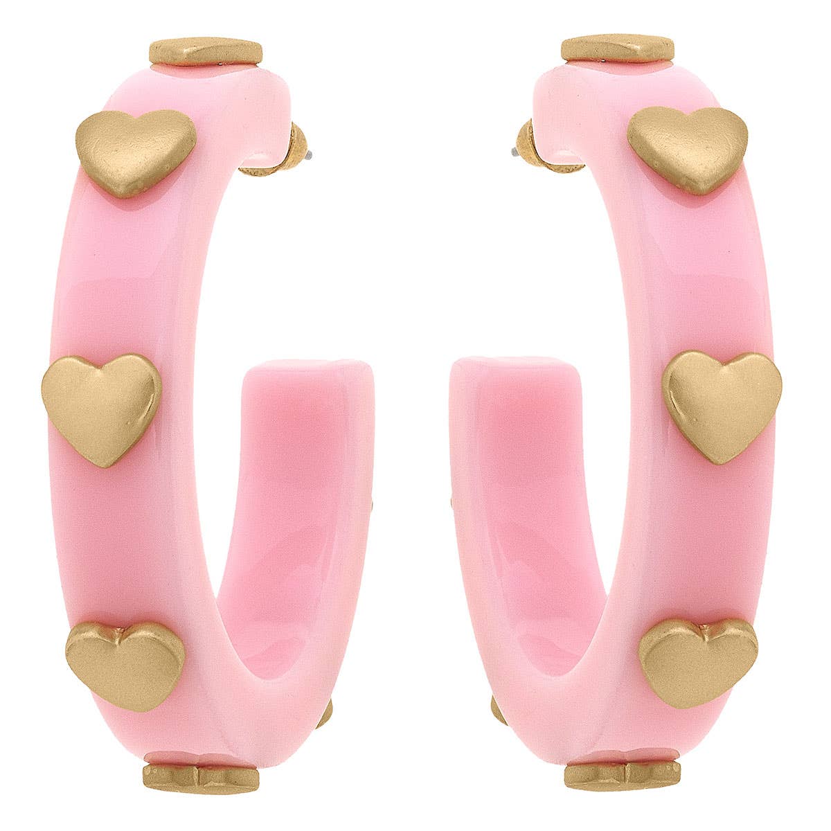 Canvas Style - Libby Heart Resin Hoop Earrings: Light Pink