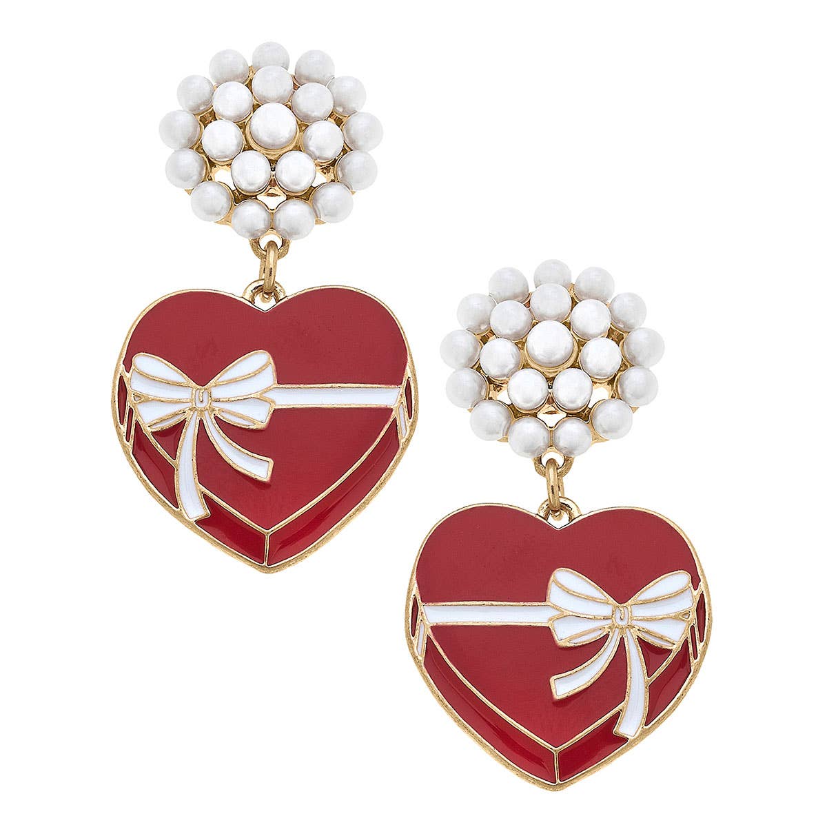 Canvas Style - Valentine's Day Box of Chocolates Enamel Earrings in Red