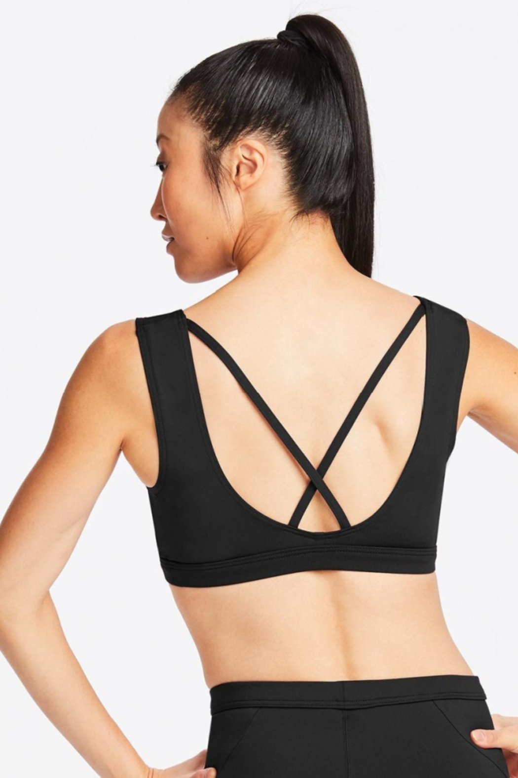 Execute with confidence in this lined Tech Tank Bra Top. Features a sporty scoop front and lower scoop back with criss-cross straps that leave a striking impression. Bonded seams maintain a sleeker profile when layered under dancewear or active wear.