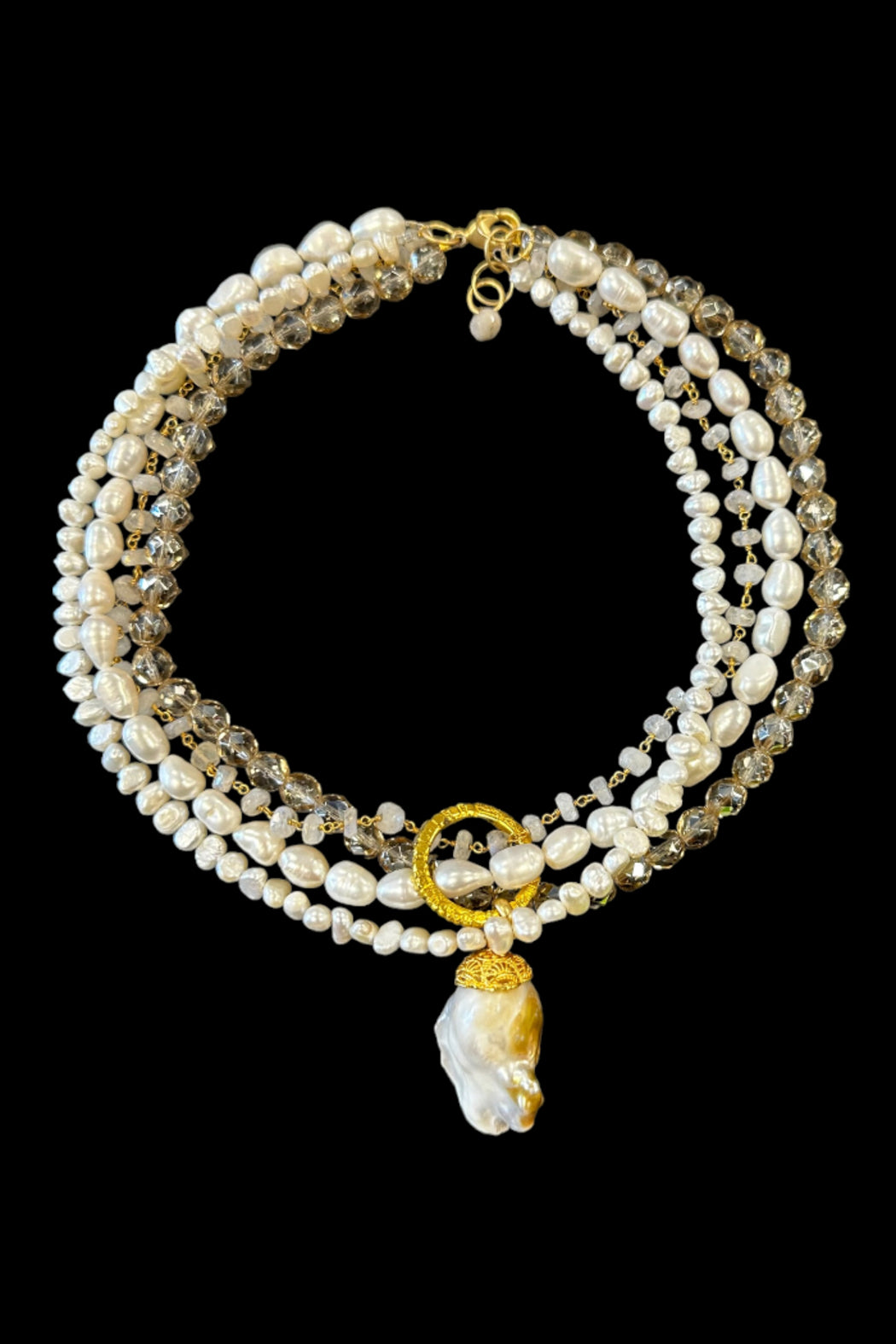 capped baroque pearl drop , pearls, ;labradorite and citrine