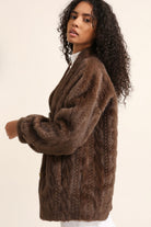 This CARLEY TEXTURED COAT is made of 100% polyester, providing a durable and comfortable outerwear option. Its faux fur cable style jacket adds a touch of elegance and warmth, making it perfect for cold weather. Stay stylish and cozy with this must-have coat.