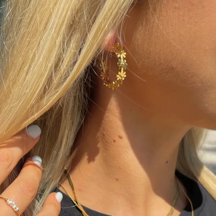 Carly Daisy Stainless Steel Hoops