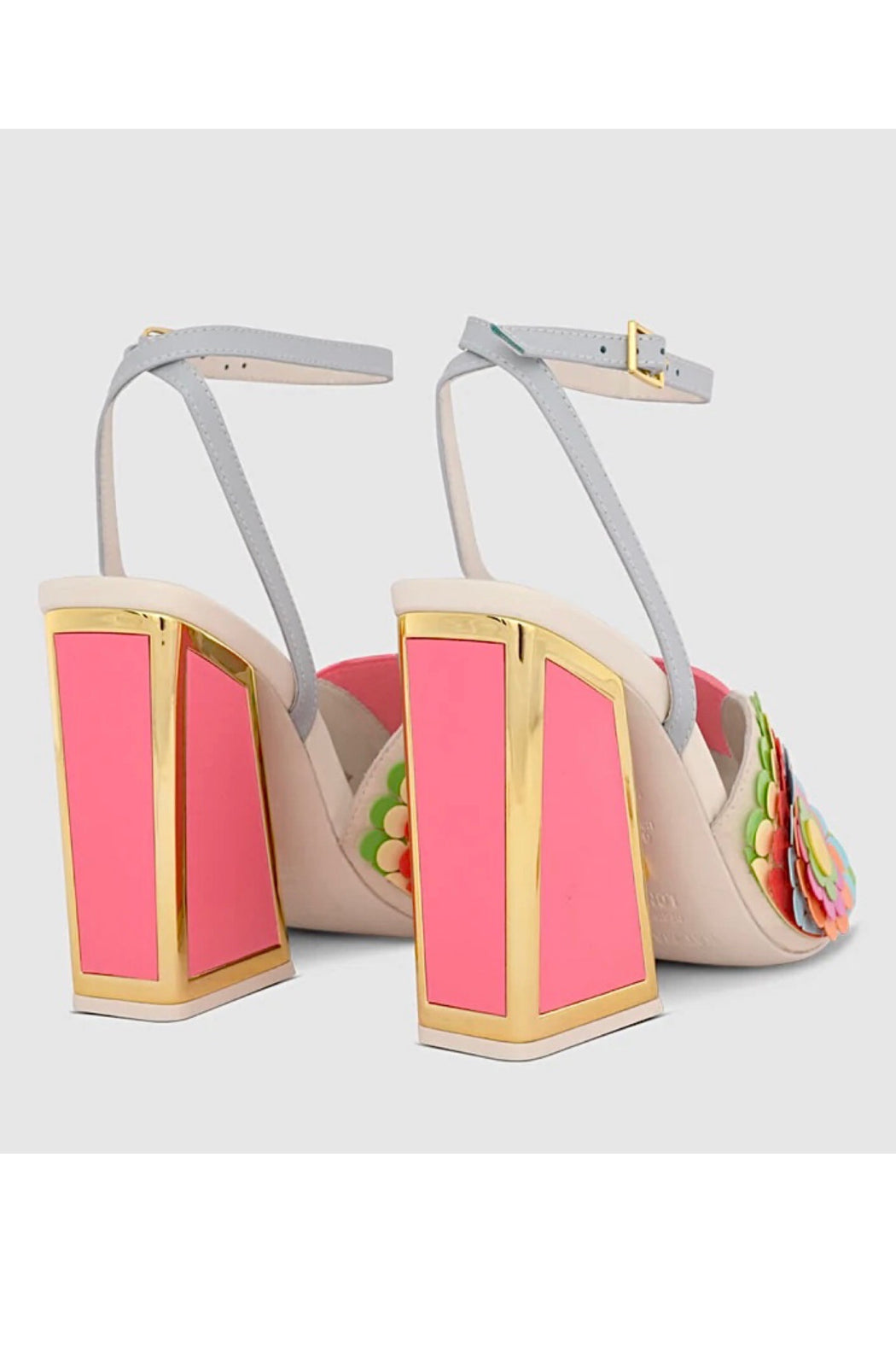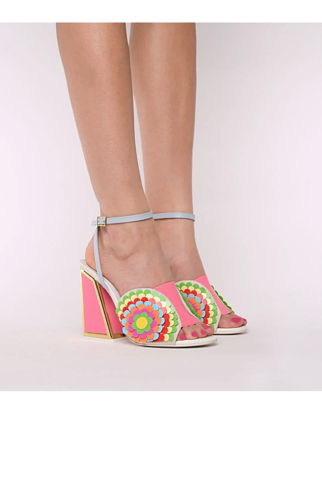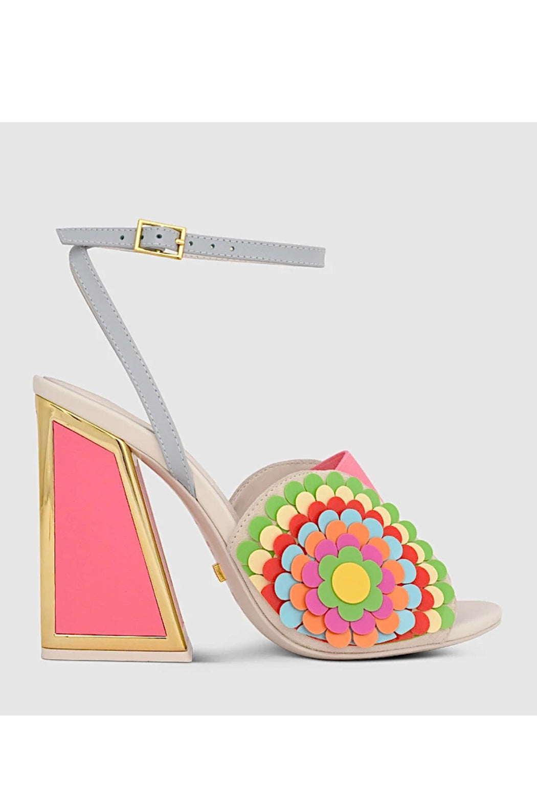 Crafted from soft leather, this dragonfruit pink and multi-coloured design features 3D floral detailing that really puts a Spring/Summer in your step.