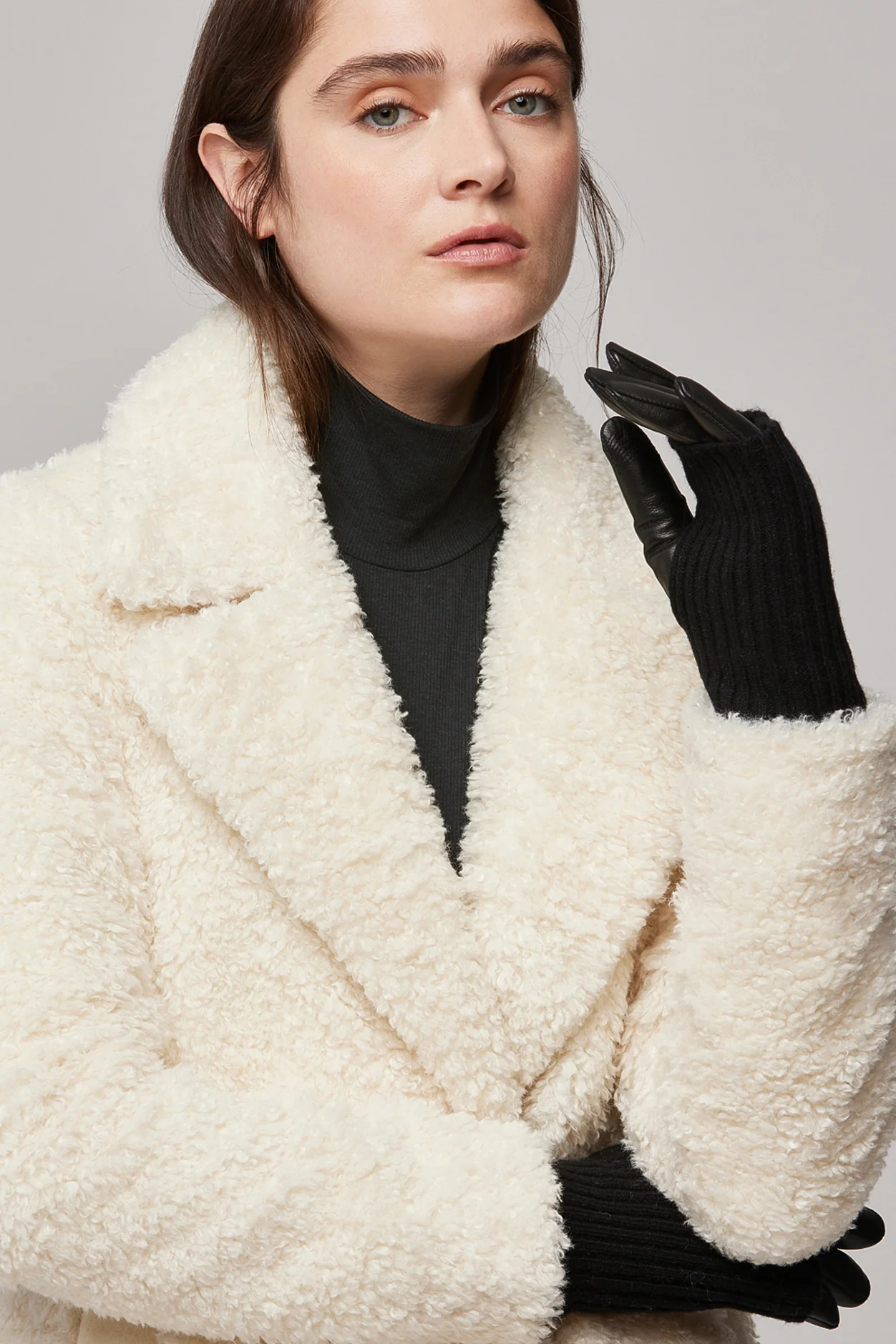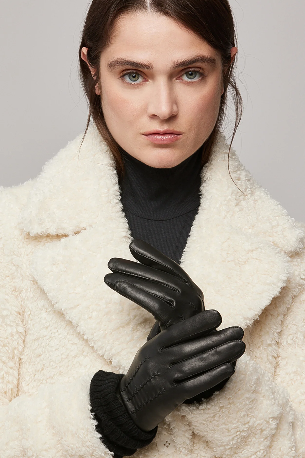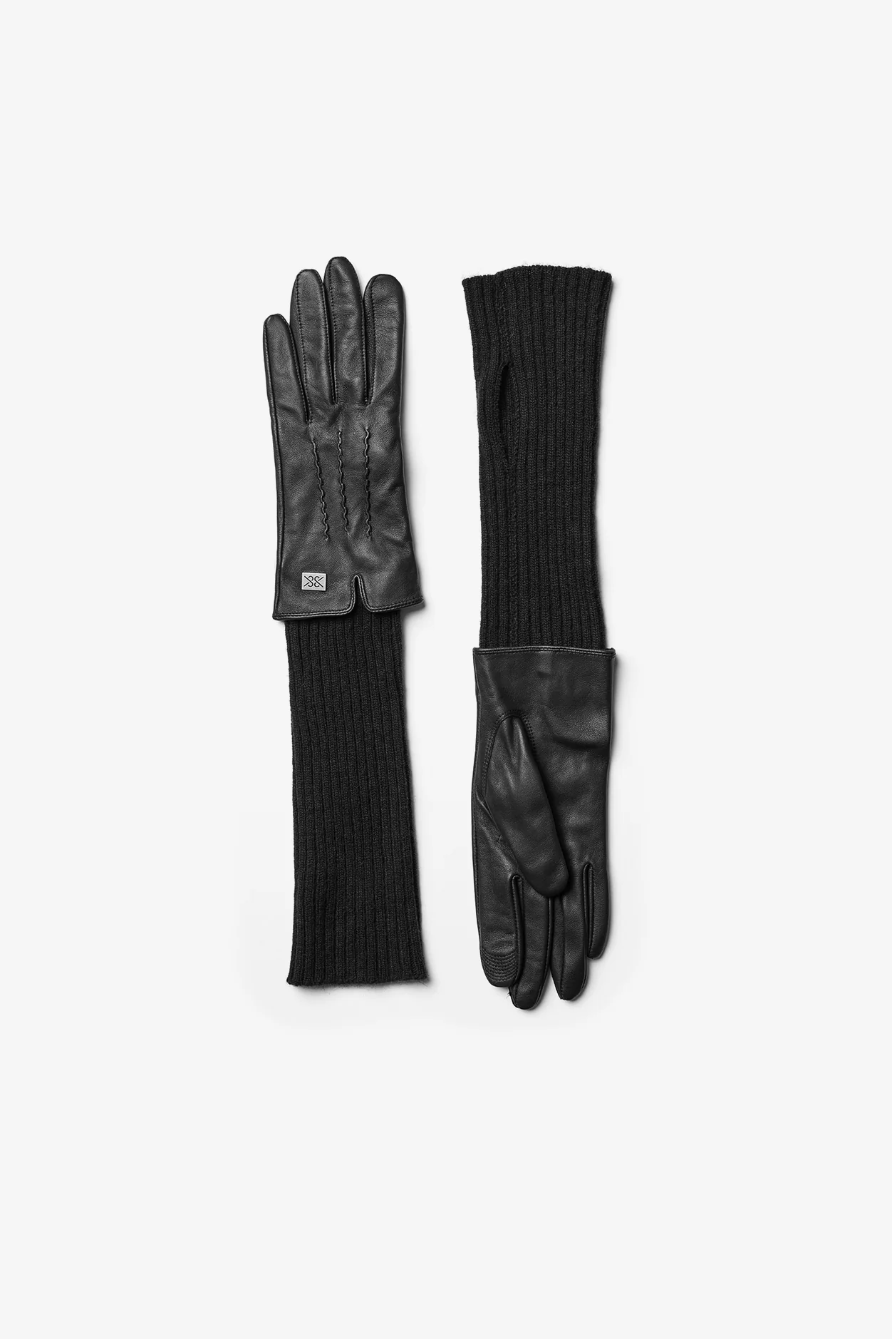 Experience pure cold-weather elegance with CARMEL-N gloves by SOIA & KYO. Made from exquisite lambskin, the short outer glove naturally protects hands from the elements. Nestled inside is an extra-long rib-knit glove, delivering warmth, softness and an added layer of luxury. Tech-friendly fingertips. Short leather glove with long rib-knit inner glove Tech-friendly index & thumb on outer glove Thumbhole on inner glove COMPOSITION & CARE INSTRUCTIONS Shell: 100% leather. Lining: 50% wool, 50% nylon. Dry clean by a leather specialist only.