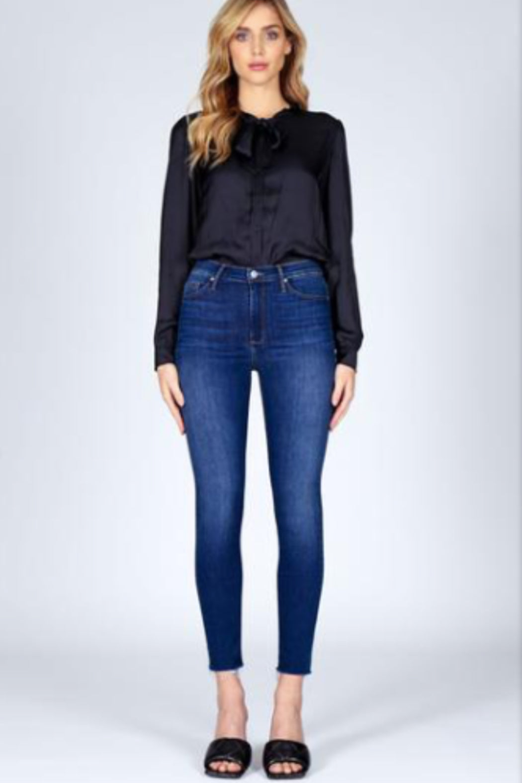 All is sunny and cheery. Our favorite ankle-length skinny in a medium blue wash with stretch comfort and extremely soft hand.