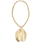 A sculptural brass shell pendant anchors the Mira Necklace, a bold nod to 1970s design. Crafted entirely from upcycled materials, this piece merges timeless form with sustainable craftsmanship.