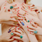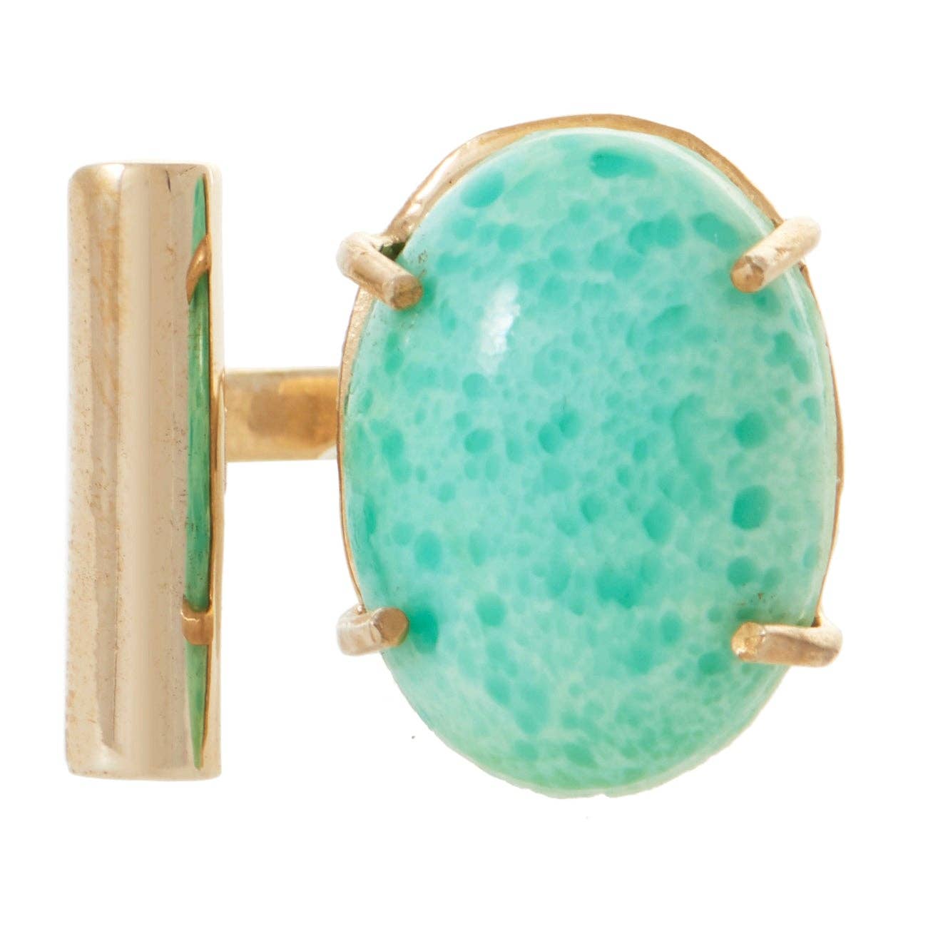- A polished brass bar and hand set vintage glass stone make up this split ring.