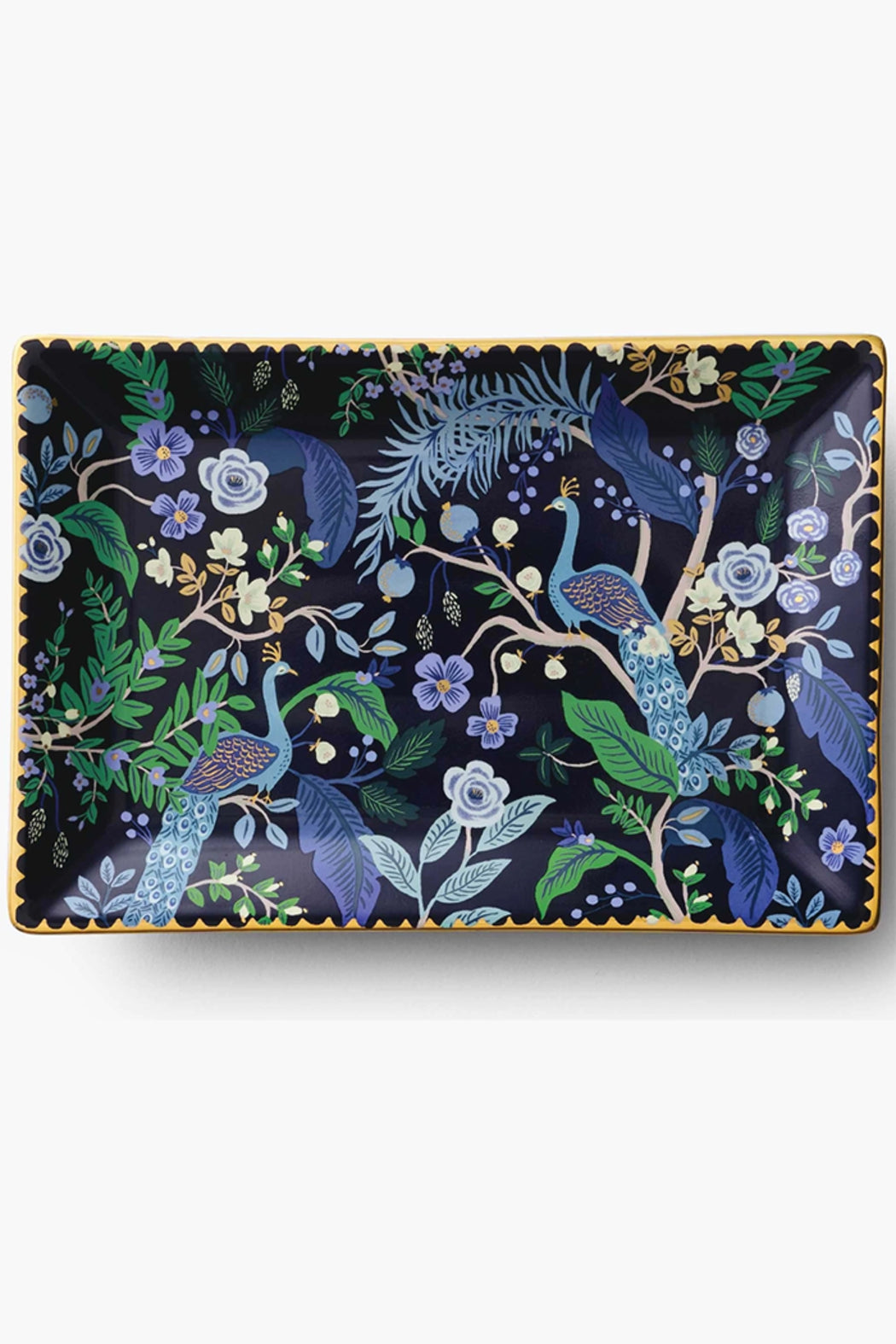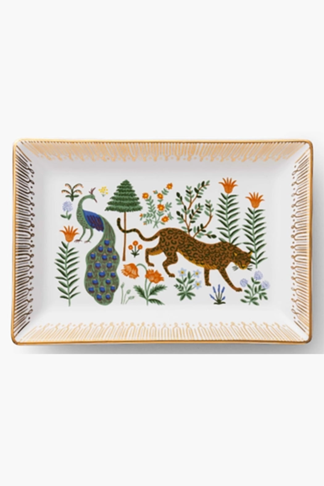 Keep track of all your trinkets with one of Rifle's catchall trays, perfectly sized for keys or jewelry. These porcelain dish features bold illustrations and has metallic gold details for extra shine.