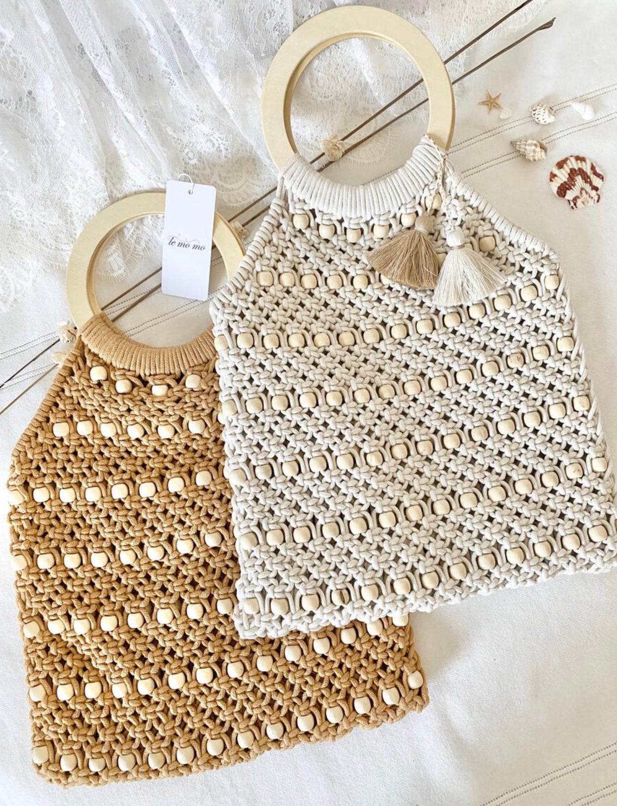 Ce ce co - Ladies Knit Bag Wooden Beans & Handle