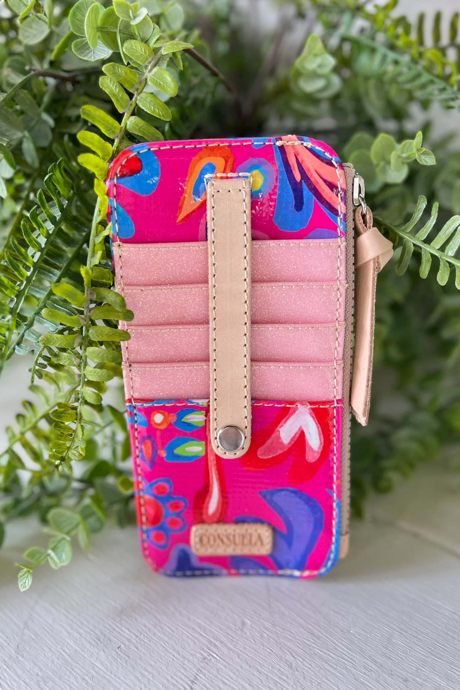 Keeping things light and easy, the card organizer is perfect for credit cards and folded bills. This colorful wallet’s snap-closure and zipper compartment provides security while you take on the day.