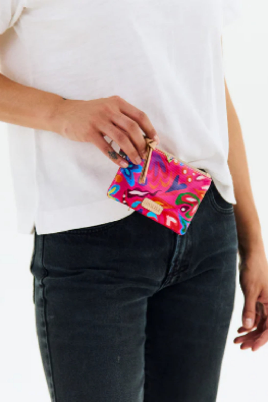 The Pouch is an easy, all-in-one bag to keep your cards and cash organized and on hand. An attached metal keyring takes this colorful pouch wallet from your bag to keys with ease.