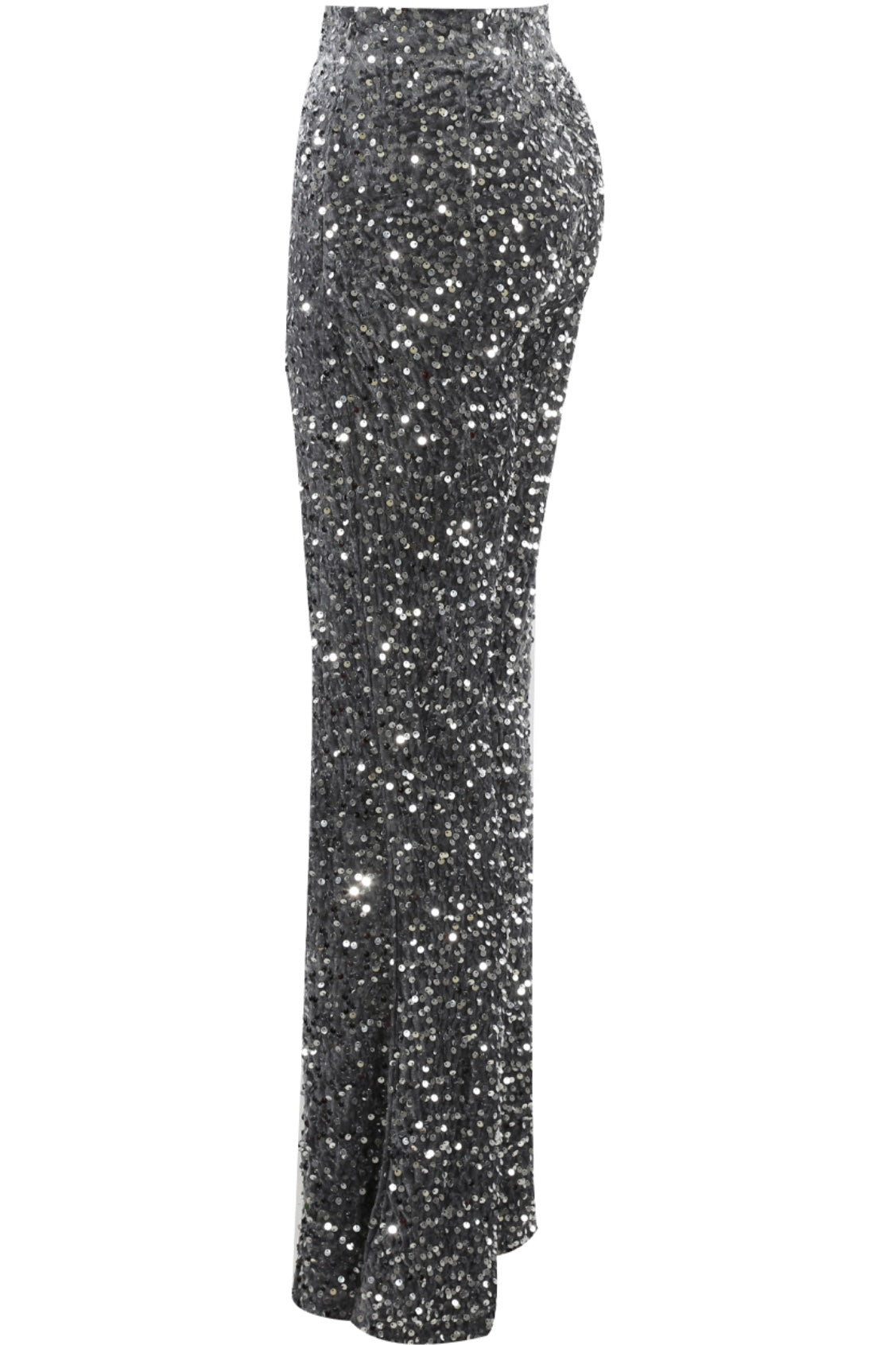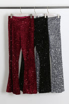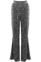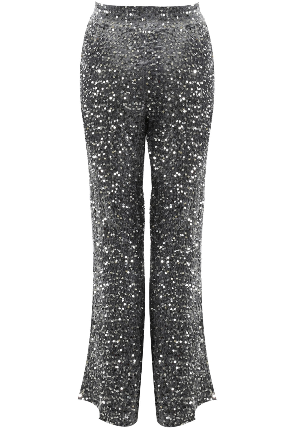 Indulge in luxury with our exclusive CELESTE SEQUIN TROUSERS. Crafted with a shimmering sequin trim fabric, these trousers offer a sophisticated and elegant flair. The flare leg fitting creates a flattering silhouette, while the side invisible zip closure adds a seamless finish. Made with premium silver 100% polyester, these trousers are a must-have addition to your wardrobe.