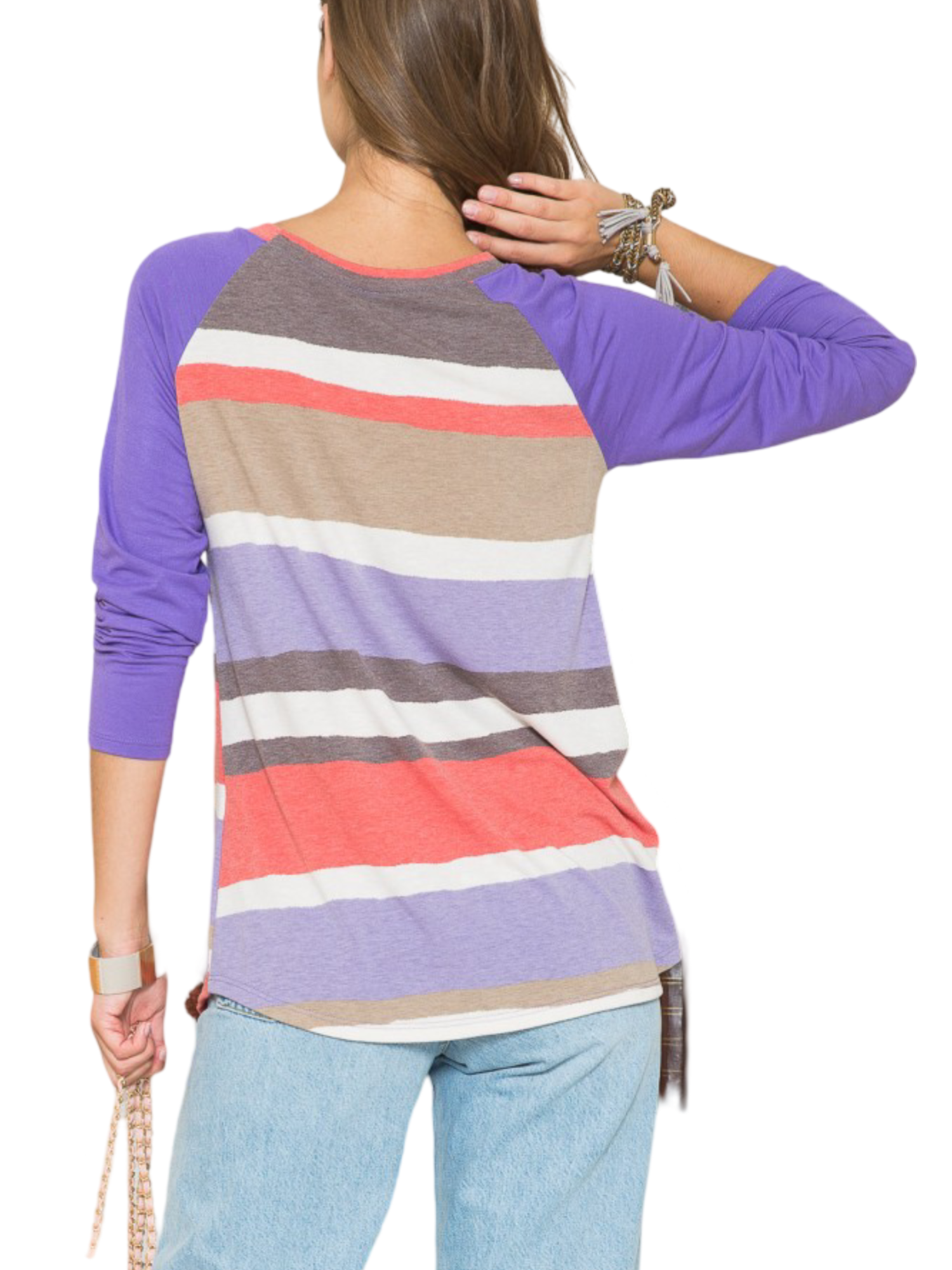 Description – Effortlessly chic and endlessly cozy, the Celeste Striped Raglan is your go-to for casual elegance. Featuring soft, breathable fabric and bold, colorful stripes, this sweater offers a relaxed fit with a flattering raglan design. Perfect for layering or wearing solo, it pairs seamlessly with your favorite jeans or skirts for a stylish, laid-back look.
