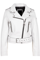 With it's 100% lambskin leather  bottom of jacket, the Celin  completed with a belt detail also on the waist. super cute with black detail around zipper