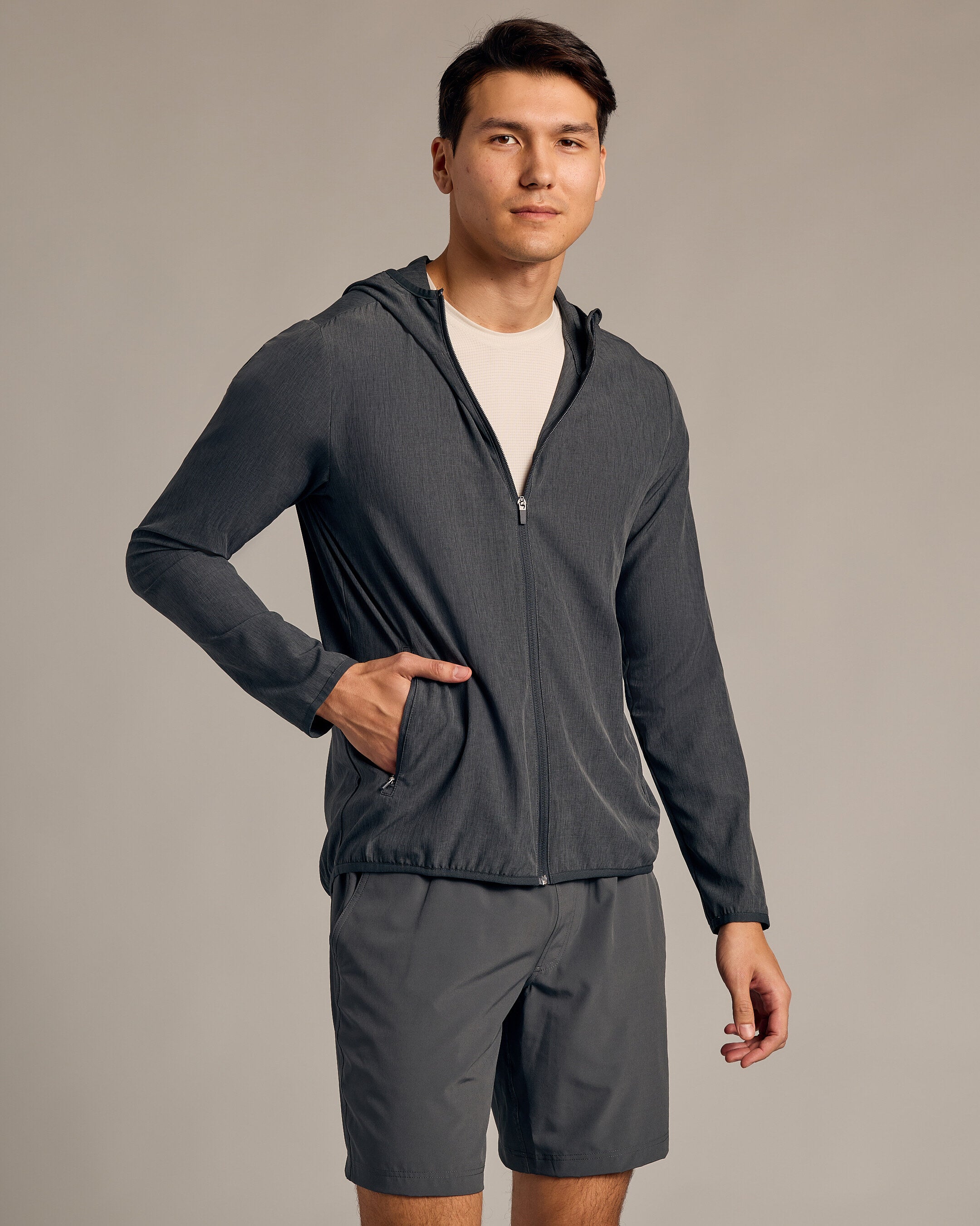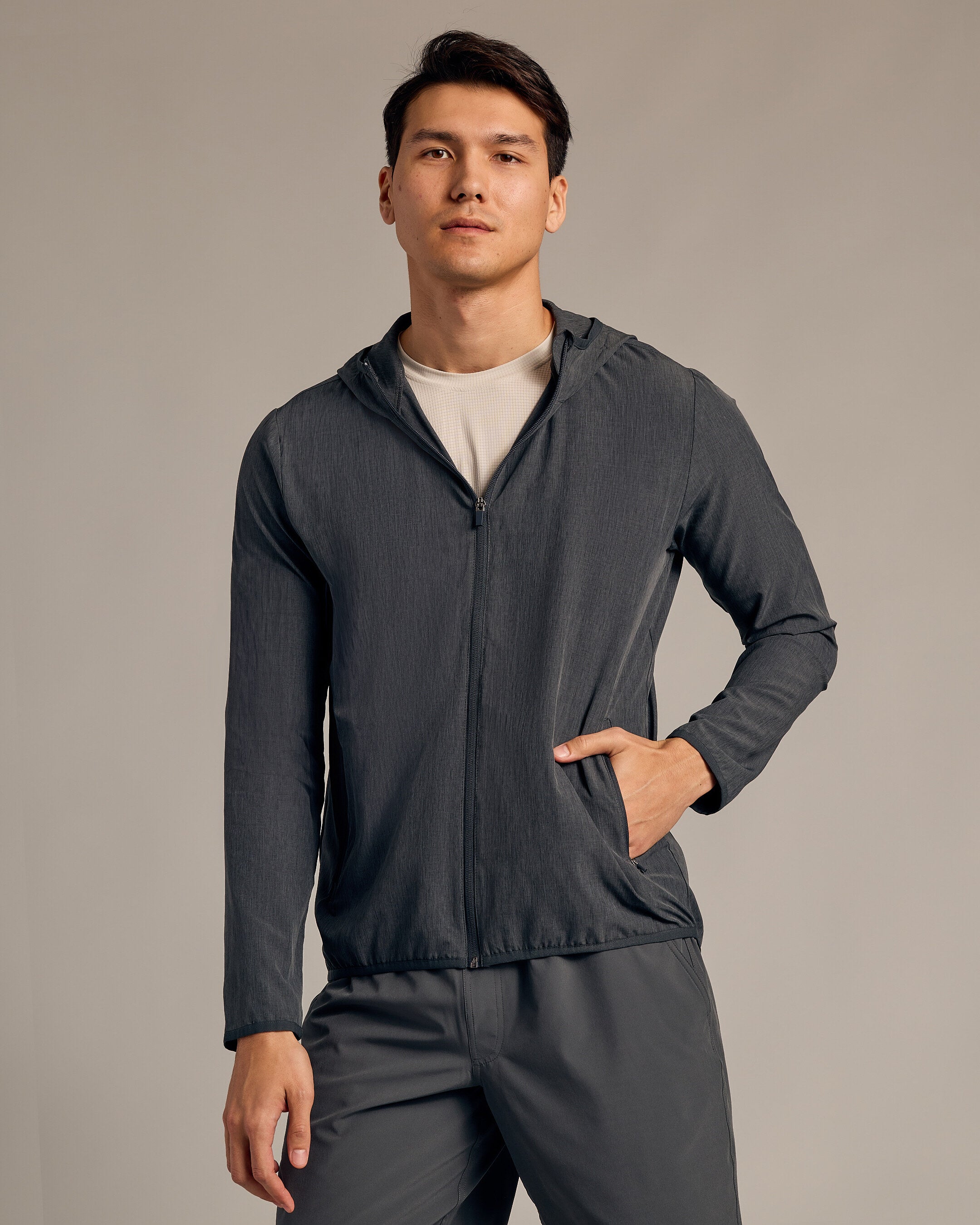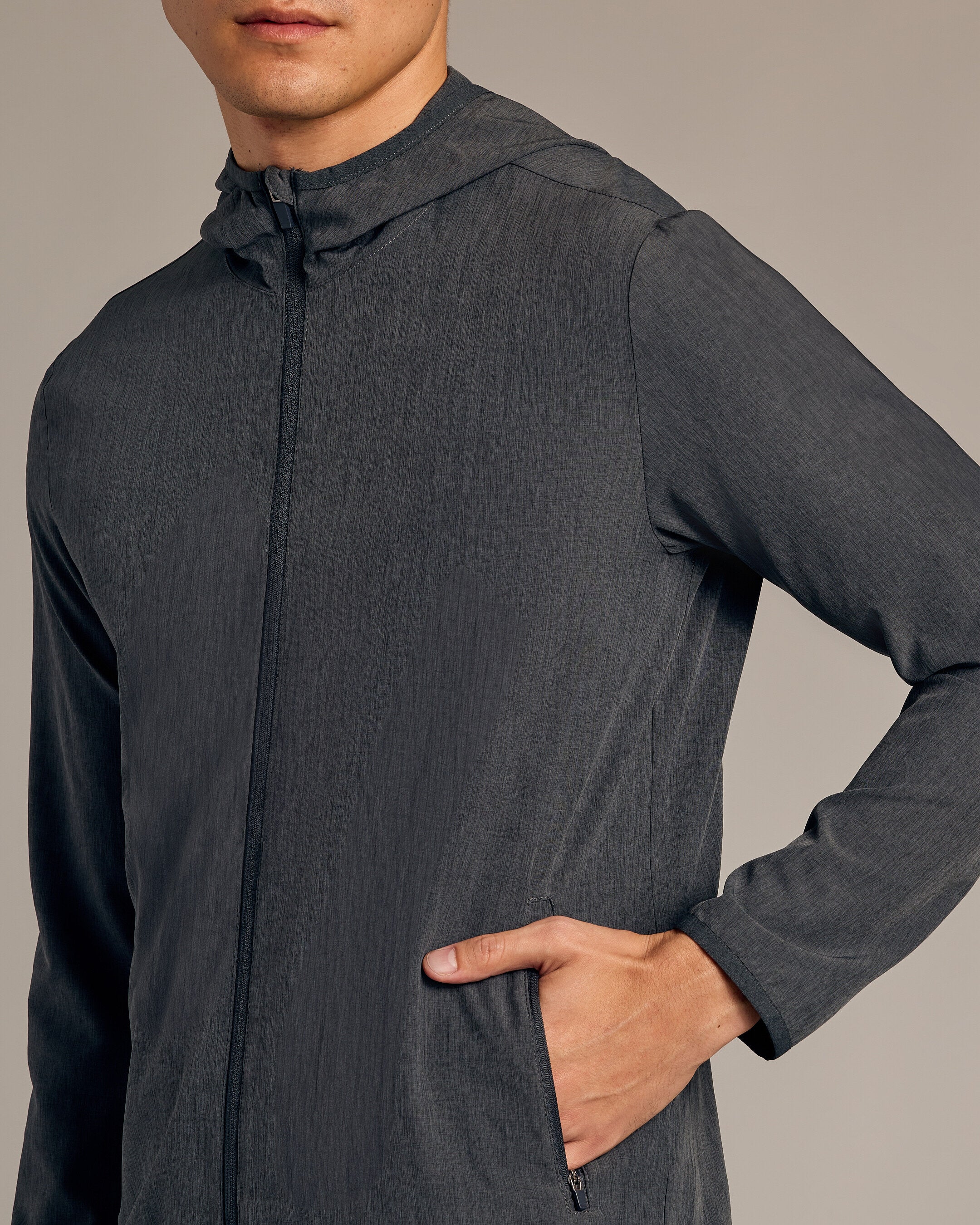 Don’t let the elements stop you. Our water-resistant active jacket is soft, smooth, and lightweight, giving you maximum mobility and comfort. Featuring zipper front pockets for holding your stuff and a hood for protecting your head. Designed with utility in mind - but you know we didn’t forget the fit (slim through the upper body with room for light layers). Oh, and it’s got anti-odor fabric to keep off the workout stank.