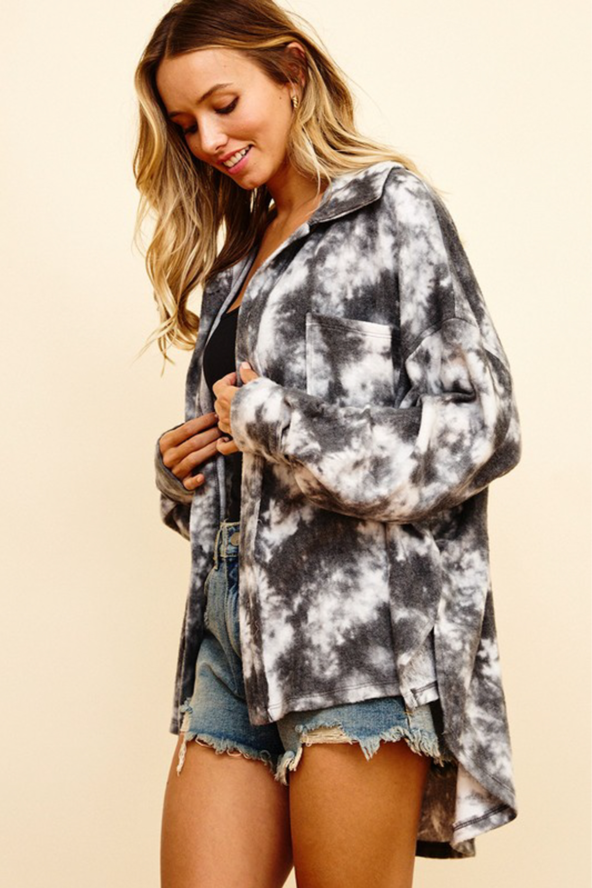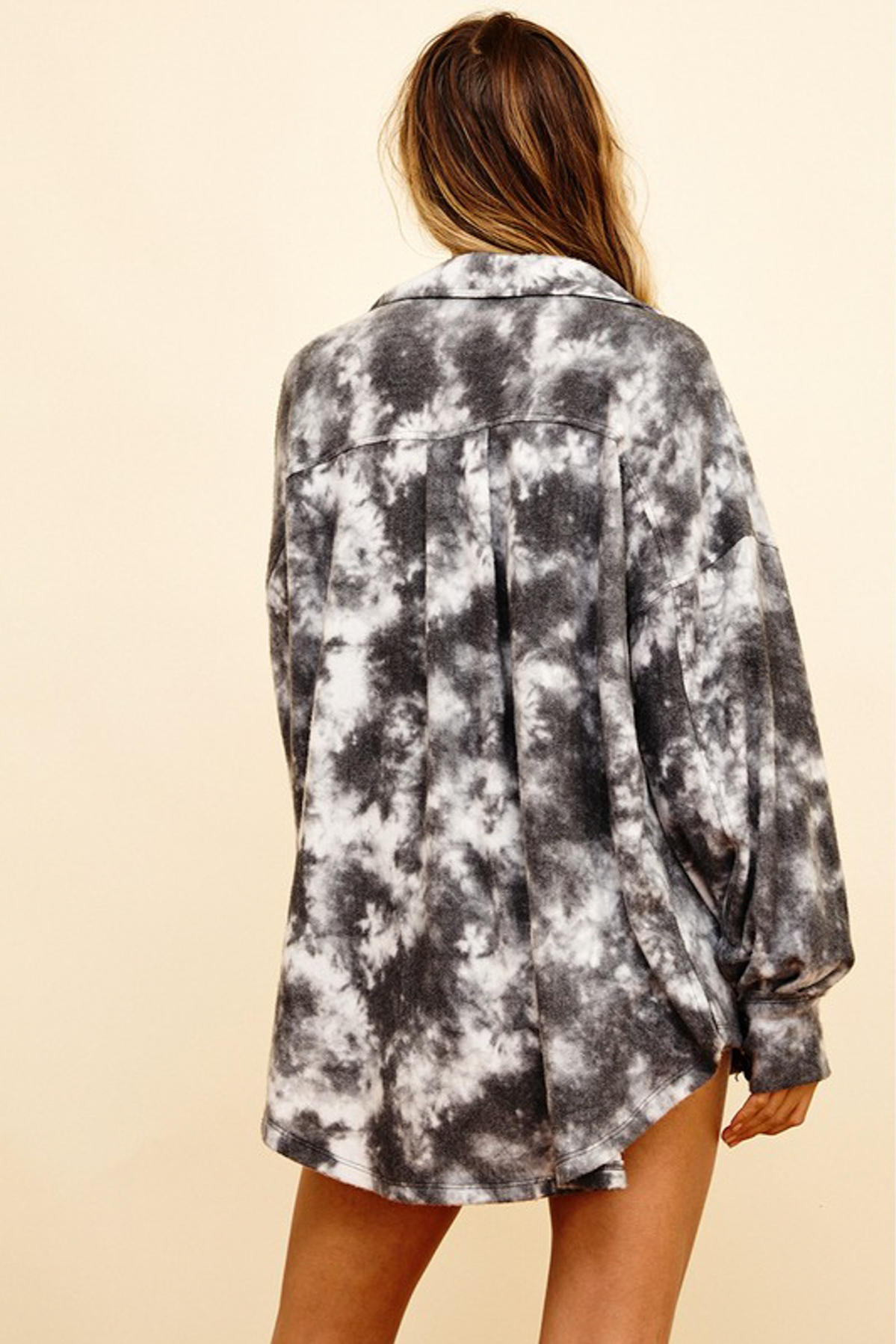 This Charcoal Tie Dye Top is made from lightweight and breathable material, allowing for comfortable all-day wear. Featuring a unique tie dye pattern in a dark charcoal color, this stylish top is sure to make a statement.