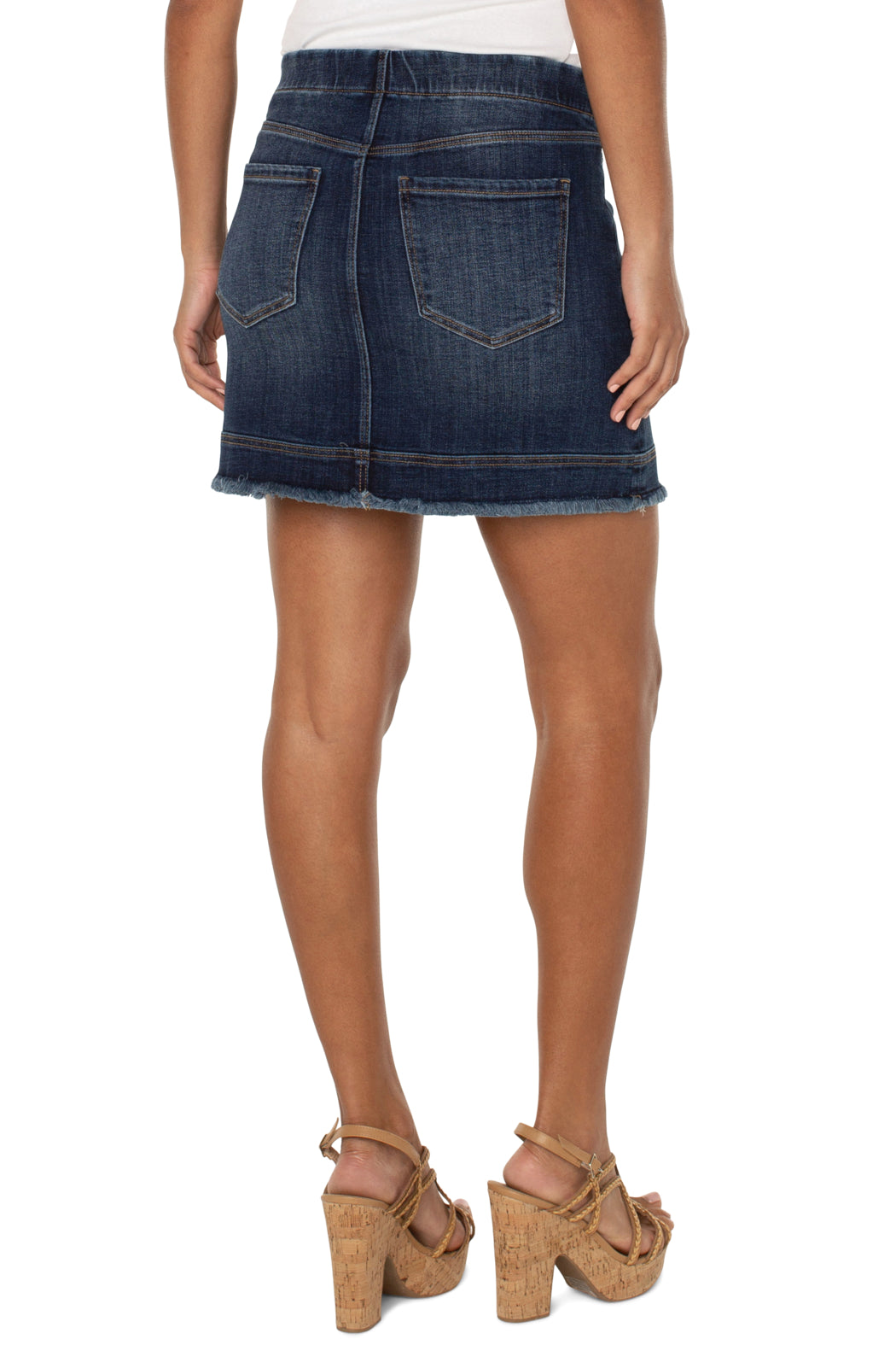 This versatile A-line skirt offers a slimming silhouette with seaming details in a super flattering dark wash denim. Pair with a tee and utility jacket for a fun weekend style or dress it up with heels and a blouse for a night out!