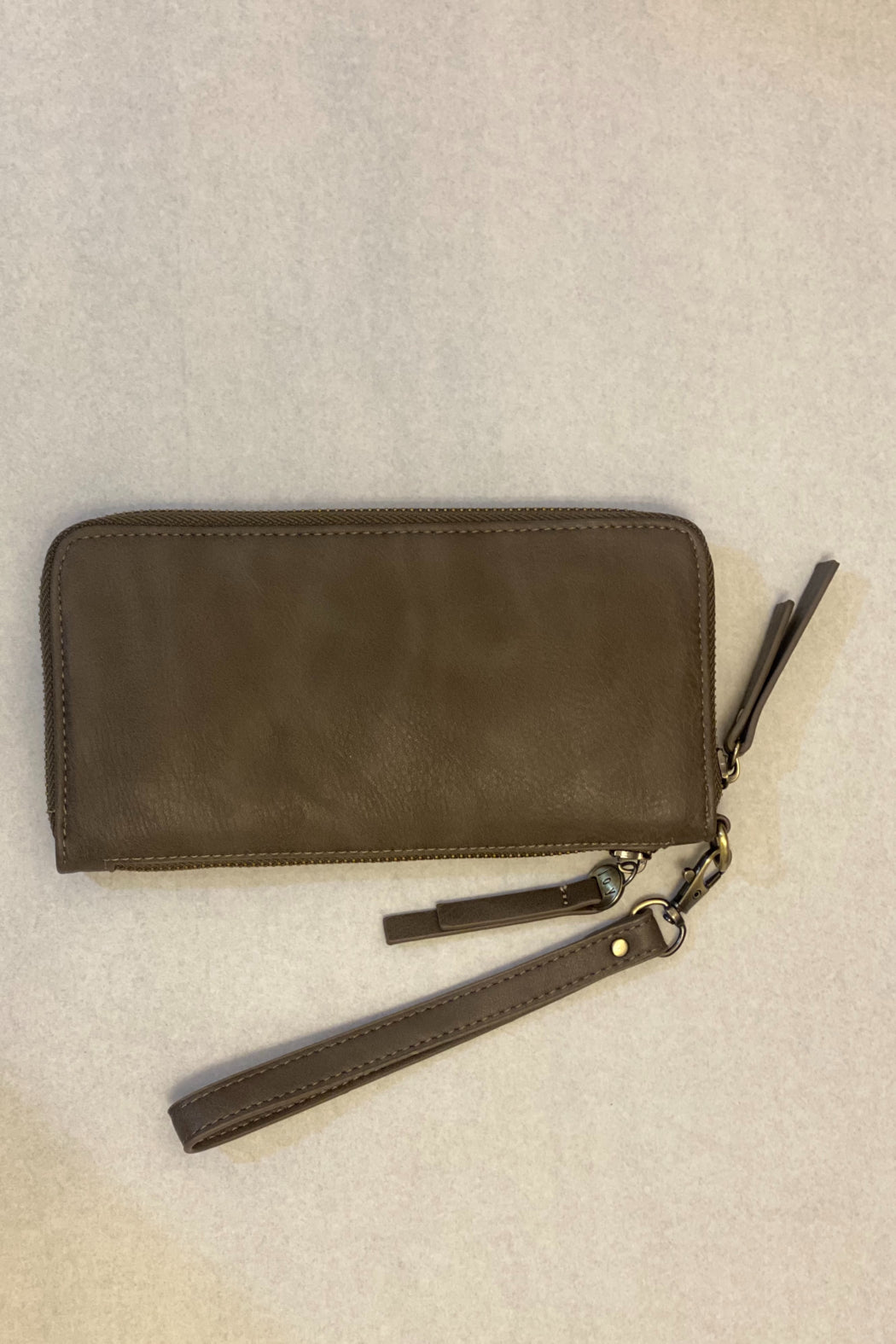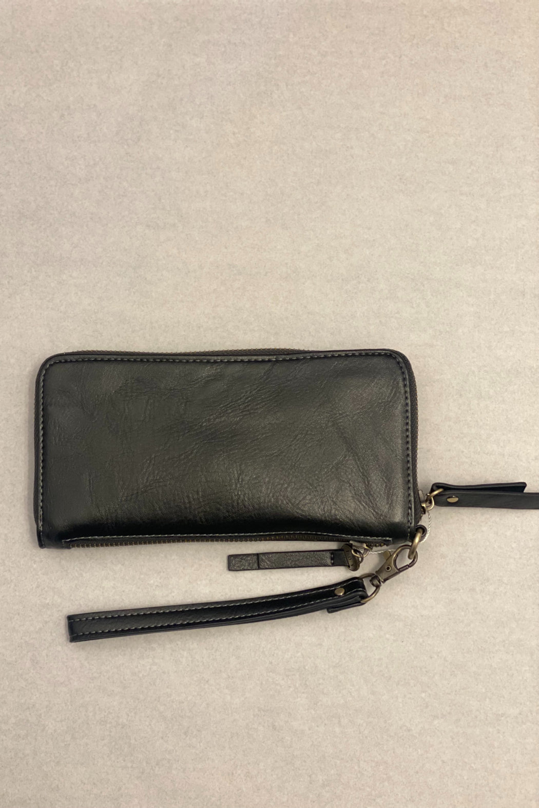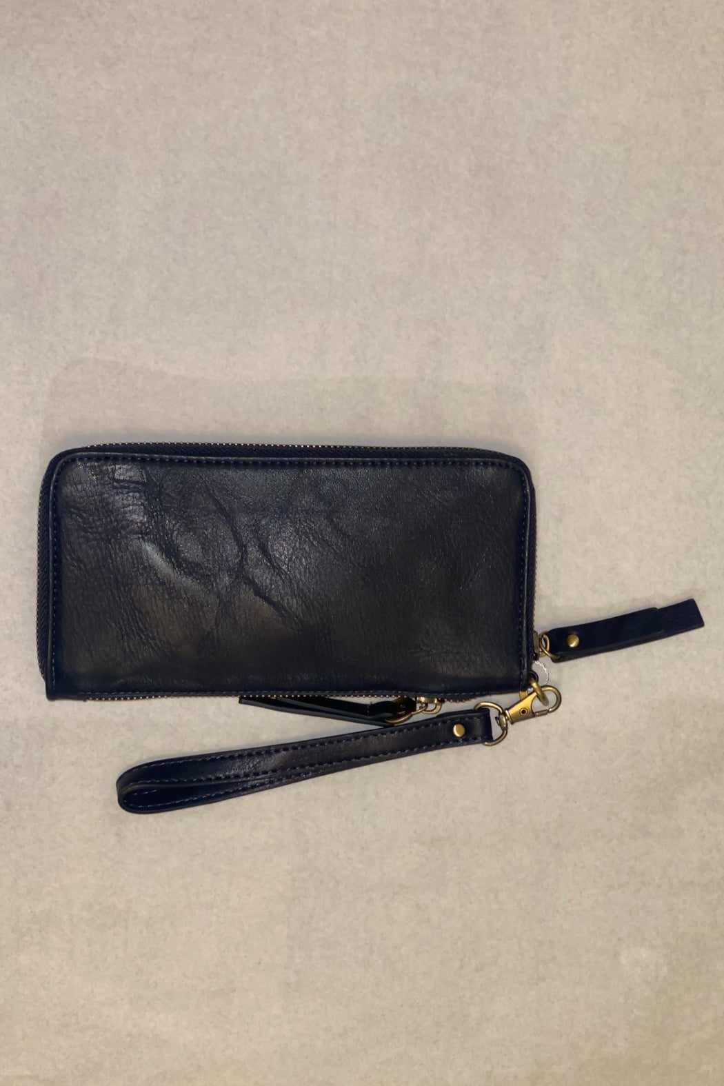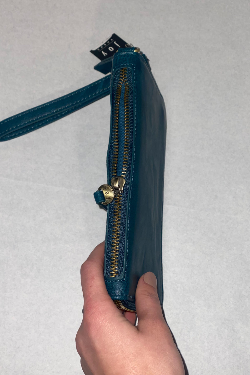 Product Details • 7.75” Wide x 4” High x .5” Deep • Full Zip Around Closure • Exterior Zip Pocket on Spine • Removable Wristlet Strap • 12 Credit Card Pockets • 2 Billfold Pockets • Interior Zipper Coin Pocket • Washed Canvas Lining • Joy Logo Zipper Pull • Brass plated Hardware • 100% Vegan leather (polyurethane)